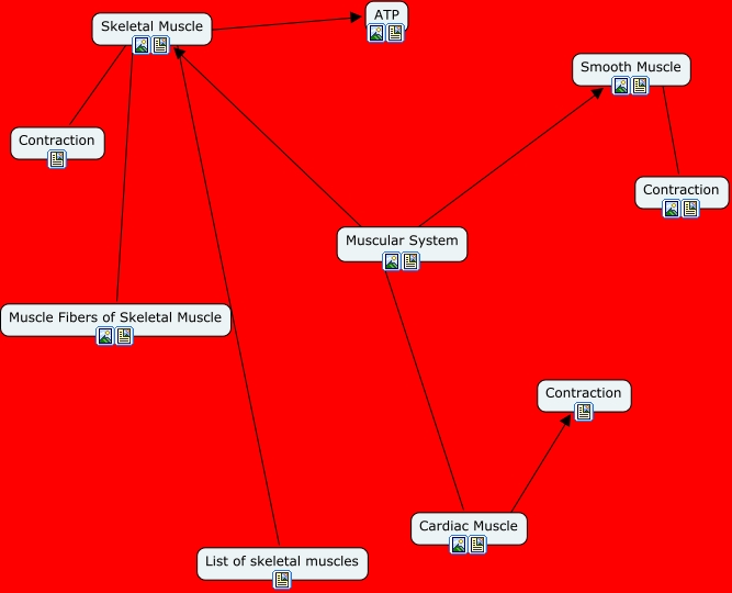 This Concept Map, created with IHMC CmapTools, has information related to: Muscular System, Smooth Muscle ???? Contraction, Muscular System Smooth Muscle, Skeletal Muscle ???? Muscle Fibers of Skeletal Muscle, Muscular System ???? Cardiac Muscle, Skeletal Muscle ???? ATP, Skeletal Muscle ???? Contraction, Muscular System ???? Skeletal Muscle, Cardiac Muscle ???? Contraction, ???? ???? List of skeletal muscles