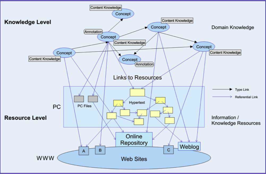 Representational Features, personal knowledge perspective includes resource knowledge, Digital Concept Maps e.g. Examples of Based Concept Mapping Tools, visual semantic when used as knowledge repository, personal knowledge perspective includes concept knowledge, semiotic codes e.g. verbal/ written, information resources provides details about concepts, personal knowledge perspective includes content knowledge, Digital Concept Maps defines personal knowledge perspective, concepts abstracts information resources, information resources defines concept knowledge