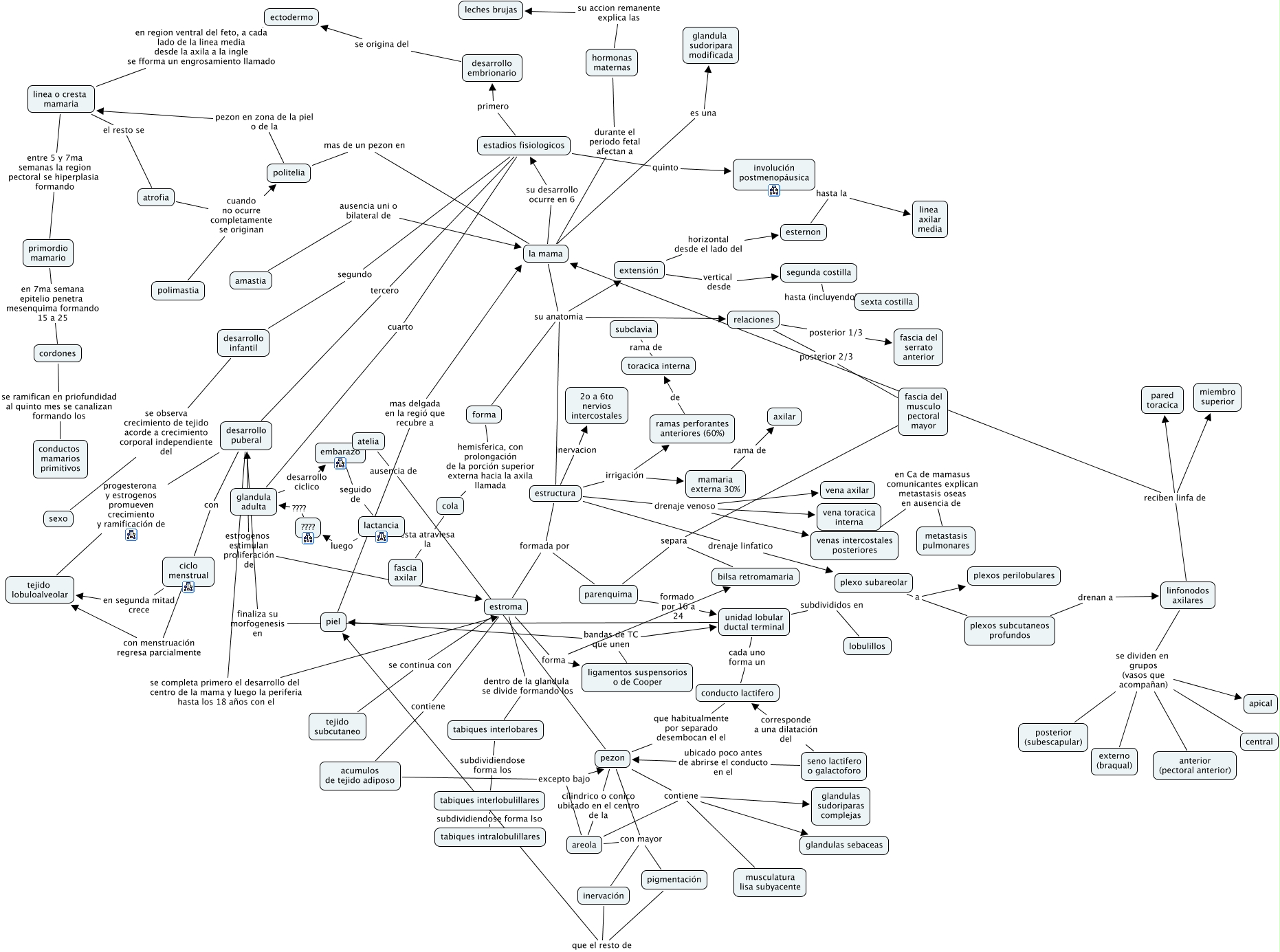 Este Cmap, tiene información relacionada con: embriologia, desarrollo y anatomia de la mama, atrofia cuando no ocurre completamente se originan polimastia, ectodermo en region ventral del feto, a cada lado de la linea media desde la axila a la ingle se fforma un engrosamiento llamado linea o cresta mamaria, atelia ausencia de pezon, unidad lobular ductal terminal cada uno forma un conducto lactifero, extensión horizontal desde el lado del esternon, venas intercostales posteriores en Ca de mamasus comunicantes explican metastasis oseas en ausencia de metastasis pulmonares, ramas perforantes anteriores (60%) de toracica interna, estadios fisiologicos tercero desarrollo puberal, cola esta atraviesa la fascia axilar, extensión vertical desde segunda costilla, estructura irrigación mamaria externa 30%, primordio mamario en 7ma semana epitelio penetra mesenquima formando 15 a 25 cordones, plexo subareolar a plexos subcutaneos profundos, estadios fisiologicos quinto involución postmenopáusica, pigmentación que el resto de piel, areola con mayor pigmentación, estructura formada por parenquima, desarrollo puberal con ciclo menstrual, embarazo seguido de lactancia, estroma contiene acumulos de tejido adiposo