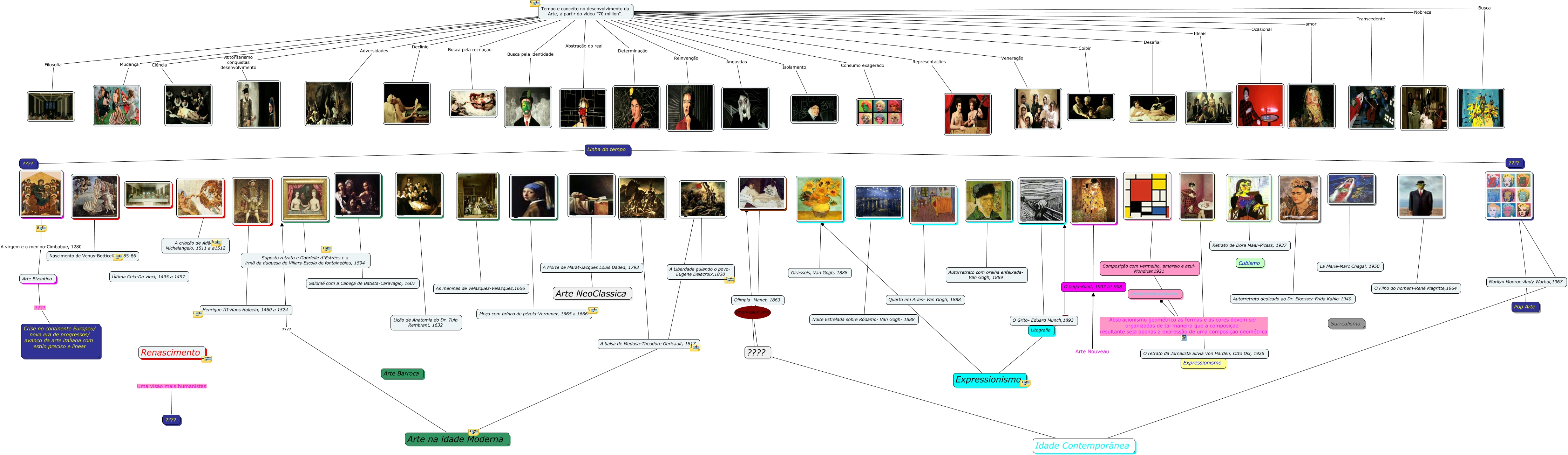 Esse mapa conceitual, produzido no IHMC CmapTools, tem a informação relacionada a: Tempo e conceito no desenvolvimento da Arte, a partir do vídeo 70 million, Tempo e conceito no desenvolvimento da Arte, a partir do video "70 million". Mudança, ???? Autorretrato dedicado ao Dr. Eloesser-Frida Kahlo-1940, Tempo e conceito no desenvolvimento da Arte, a partir do video "70 million". Declinio, Tempo e conceito no desenvolvimento da Arte, a partir do video "70 million". Busca pela recriaçao, Tempo e conceito no desenvolvimento da Arte, a partir do video "70 million". Ocasional, ???? Lição de Anatomia do Dr. Tulp Rembrant, 1632, ???? Olimpia- Manet, 1863, Linha do tempo ???? ????, Composição com vermelho, amarelo e azul- Mondrian1921 Abstracionismo geométrico as formas e as cores devem ser organizadas de tal maneira que a composiçao resultante seja apenas a expressão de uma composiçao geométrica Abstracionismo geometrico, ???? Nascimento de Venus-Botticelli, 1485-86, Tempo e conceito no desenvolvimento da Arte, a partir do video "70 million". Isolamento, ???? O retrato da Jornalista Silvia Von Harden, Otto Dix, 1926, Tempo e conceito no desenvolvimento da Arte, a partir do video "70 million". Desafiar, Arte Nouveau O beijo-Klimt, 1907 a1 908, ???? Henrique III-Hans Holbein, 1460 a 1524, Marilyn Monroe-Andy Warhol,1967 ???? Pop Arte, Arte na idade Moderna ???? ????, Tempo e conceito no desenvolvimento da Arte, a partir do video "70 million". Angustias, Tempo e conceito no desenvolvimento da Arte, a partir do video "70 million". Adversidades, Tempo e conceito no desenvolvimento da Arte, a partir do video "70 million". Coibir