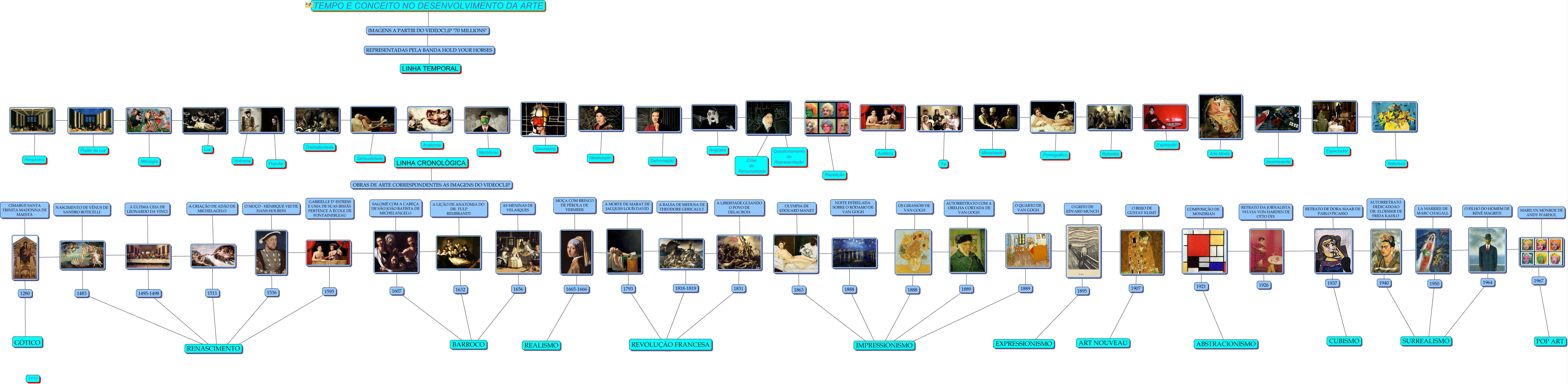Esse mapa conceitual, produzido no IHMC CmapTools, tem a informação relacionada a: Tempo e conceito no desenvolvimento da Arte, a partir do Vídeo 70 Million, ????, ???? 1921, ????, 1495-1498 ???? RENASCIMENTO, 1483 ???? RENASCIMENTO, 1940 ????, ????, ???? 1280, ???? 1926, REPRESENTADAS PELA BANDA HOLD YOUR HORSES ???? LINHA TEMPORAL, ????, ????, ????, 1831 ???? REVOLUÇÃO FRANCESA, 1632 ???? BARROCO, TEMPO E CONCEITO NO DESENVOLVIMENTO DA ARTE ???? IMAGENS A PARTIR DO VIDEOCLIP "70 MILLIONS", MOÇA COM BRINCO DE PÉROLA DE VERMEER ????, ????, ????, OS GIRASSÓIS DE VAN GOGH ????