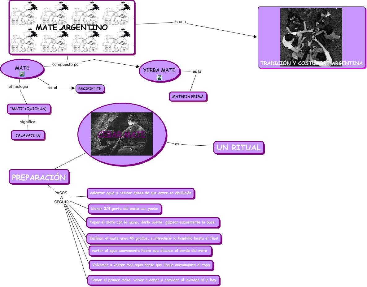 Este Cmap, tiene información relacionada con: CLASE3, PREPARACIÓN ???? CEBAR MATE, PREPARACIÓN PASOS A SEGUIR Tomar el primer mate, volver a cebar y convidar al invitado si lo hay, Volvemos a verter mas agua hasta que llegue nuevamente al tope PASOS A SEGUIR calentar agua y retirar antes de que entre en ebullición, Volvemos a verter mas agua hasta que llegue nuevamente al tope PASOS A SEGUIR Tapar el mate con la mano, darlo vuelta, golpear suavemente la base, MATE ARGENTINO compuesto por MATE, verter el agua suavemente hasta que alcance el borde del mate PASOS A SEGUIR Inclinar el mate unos 45 grados, e introducir la bombilla hasta el final, MATE es el RECIPIENTE, verter el agua suavemente hasta que alcance el borde del mate PASOS A SEGUIR Tomar el primer mate, volver a cebar y convidar al invitado si lo hay, PREPARACIÓN PASOS A SEGUIR Tapar el mate con la mano, darlo vuelta, golpear suavemente la base, CEBAR MATE es UN RITUAL, verter el agua suavemente hasta que alcance el borde del mate PASOS A SEGUIR Llenar 3/4 parte del mate con yerba, verter el agua suavemente hasta que alcance el borde del mate PASOS A SEGUIR calentar agua y retirar antes de que entre en ebullición, PREPARACIÓN PASOS A SEGUIR Inclinar el mate unos 45 grados, e introducir la bombilla hasta el final, PREPARACIÓN PASOS A SEGUIR calentar agua y retirar antes de que entre en ebullición, "MATI" (QUICHUA) significa 'CALABACITA', verter el agua suavemente hasta que alcance el borde del mate PASOS A SEGUIR Tapar el mate con la mano, darlo vuelta, golpear suavemente la base, Volvemos a verter mas agua hasta que llegue nuevamente al tope PASOS A SEGUIR Tomar el primer mate, volver a cebar y convidar al invitado si lo hay, MATE ARGENTINO compuesto por YERBA MATE, MATE etimología "MATI" (QUICHUA), Volvemos a verter mas agua hasta que llegue nuevamente al tope PASOS A SEGUIR Inclinar el mate unos 45 grados, e introducir la bombilla hasta el final