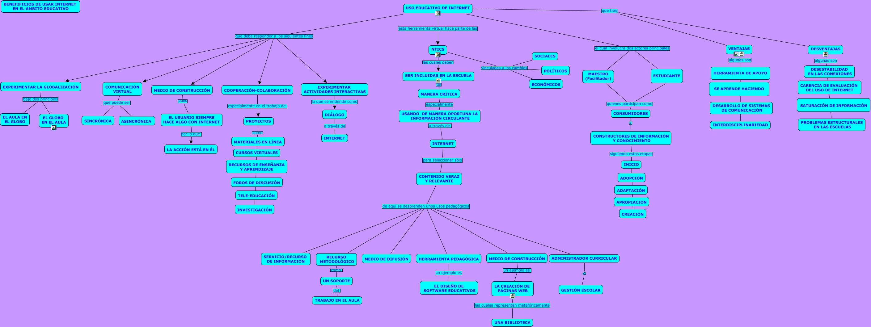 Este Cmap, tiene información relacionada con: USO EDUCATIVO DE INTERNET.cmap, HERRAMIENTA PEDAGÓGICA un ejemplo es EL DISEÑO DE SOFTWARE EDUCATIVOS, ADMINISTRADOR CURRICULAR o GESTIÓN ESCOLAR, CONSUMIDORES y CONSTRUCTORES DE INFORMACIÓN Y CONOCIMIENTO, RECURSO METODOLÓGICO como UN SOPORTE, USO EDUCATIVO DE INTERNET esta herramienta virtual hace parte de las NTICS, USO EDUCATIVO DE INTERNET que trae VENTAJAS, USO EDUCATIVO DE INTERNET que debe responder a los siguientes fines EXPERIMENTAR ACTIVIDADES INTERACTIVAS, MAESTRO (Facilitador) quienes participan como ESTUDIANTE, USO EDUCATIVO DE INTERNET que debe responder a los siguientes fines EXPERIMENTAR LA GLOBALIZACIÓN, CONSTRUCTORES DE INFORMACIÓN Y CONOCIMIENTO siguiendo estas etapas CREACIÓN, USO EDUCATIVO DE INTERNET el cual involucra dos actores principales ESTUDIANTE, CONTENIDO VERAZ Y RELEVANTE de aquí se desprenden unos usos pedagógicos MEDIO DE CONSTRUCCIÓN, LA CREACIÓN DE PÁGINAS WEB las cuales representan metafóricamente UNA BIBLIOTECA, DESVENTAJAS algunas son PROBLEMAS ESTRUCTURALES EN LAS ESCUELAS, NTICS vinculadas a los cambios POLÍTICOS, USO EDUCATIVO DE INTERNET que debe responder a los siguientes fines COOPERACIÓN-COLABORACIÓN, VENTAJAS algunas son INTERDISCIPLINARIEDAD, USANDO DE MANERA OPORTUNA LA INFORMACIÓN CIRCULANTE a través de INTERNET, MANERA CRÍTICA especialmente USANDO DE MANERA OPORTUNA LA INFORMACIÓN CIRCULANTE, CONTENIDO VERAZ Y RELEVANTE de aquí se desprenden unos usos pedagógicos RECURSO METODOLÓGICO