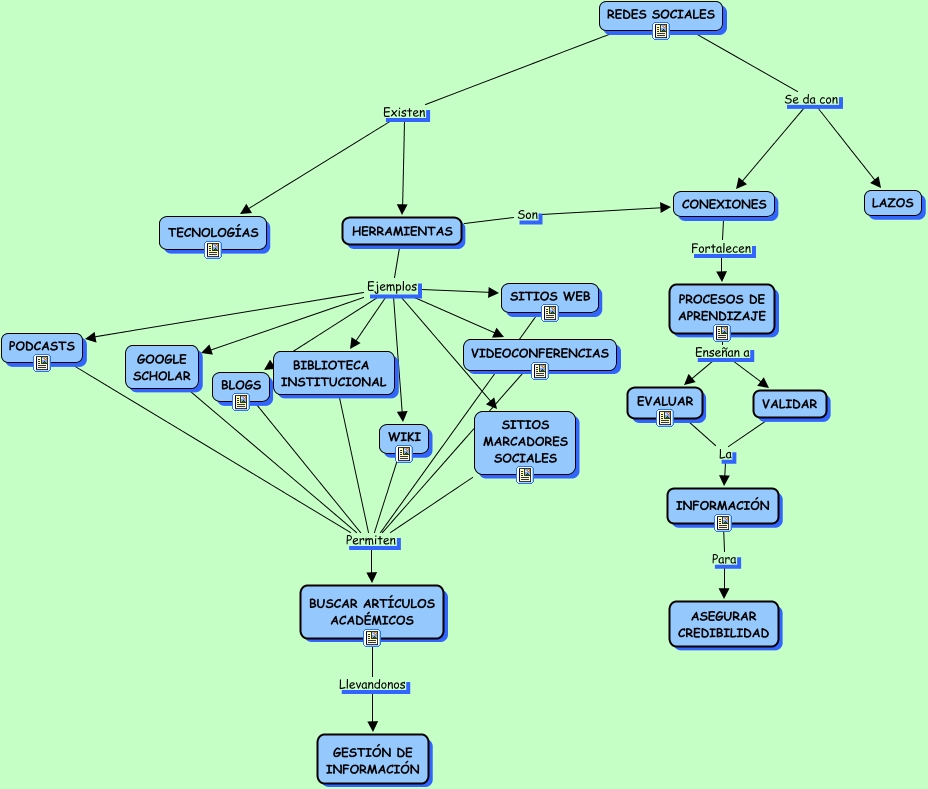 Este Cmap, tiene información relacionada con: REDES SOCIALES, VIDEOCONFERENCIAS Permiten BUSCAR ARTÍCULOS ACADÉMICOS, HERRAMIENTAS Ejemplos SITIOS WEB, PROCESOS DE APRENDIZAJE Enseñan a VALIDAR, HERRAMIENTAS Ejemplos VIDEOCONFERENCIAS, PODCASTS Permiten BUSCAR ARTÍCULOS ACADÉMICOS, BLOGS Permiten BUSCAR ARTÍCULOS ACADÉMICOS, BUSCAR ARTÍCULOS ACADÉMICOS Llevandonos GESTIÓN DE INFORMACIÓN, EVALUAR La INFORMACIÓN, HERRAMIENTAS Ejemplos WIKI, REDES SOCIALES Se da con CONEXIONES, HERRAMIENTAS Ejemplos BLOGS, CONEXIONES Fortalecen PROCESOS DE APRENDIZAJE, VALIDAR La INFORMACIÓN, HERRAMIENTAS Son CONEXIONES, HERRAMIENTAS Ejemplos SITIOS MARCADORES SOCIALES, HERRAMIENTAS Ejemplos PODCASTS, INFORMACIÓN Para ASEGURAR CREDIBILIDAD, SITIOS MARCADORES SOCIALES Permiten BUSCAR ARTÍCULOS ACADÉMICOS, WIKI Permiten BUSCAR ARTÍCULOS ACADÉMICOS, REDES SOCIALES Se da con LAZOS