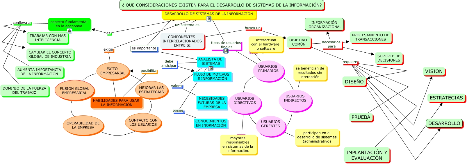 Este Cmap, tiene información relacionada con: sistemas de la información, OBJETIVO COMÚN requiere DESARROLLO, OBJETIVO COMÚN requiere VISION, DESARROLLO DE SISTEMAS DE LA INFORMACIÓN tipos de usuarios finales USUARIOS PRIMARIOS, aspecto fundamental en la economía. conlleva a TRABAJAR CON MAS INTELIGENCIA, OBJETIVO COMÚN requiere PRUEBA, OPERABILIDAD DE LA EMPRESA ???? CONTACTO CON LOS USUARIOS, DESARROLLO DE SISTEMAS DE LA INFORMACIÓN un sistema es COMPONENTES INTERRELACIONADOS ENTRE SI, ANALISTA DE SISTEMAS debe anticipar FLUJO DE MOTIVOS E INFORMACIÓN, DESARROLLO DE SISTEMAS DE LA INFORMACIÓN es aspecto fundamental en la economía., COMPONENTES INTERRELACIONADOS ENTRE SI busca un OBJETIVO COMÚN, USUARIOS PRIMARIOS ???? USUARIOS DIRECTIVOS, OBJETIVO COMÚN necesarios para PROCESAMIENTO DE TRANSACCIONES, OBJETIVO COMÚN requiere ESTRATEGIAS, MEJORAR LAS ESTRATEGIAS ???? EXITO EMPRESARIAL, USUARIOS DIRECTIVOS ???? mayores responsables en sistemas de la información., USUARIOS DIRECTIVOS ???? USUARIOS GERENTES, ANALISTA DE SISTEMAS valora NECESIDADES FUTURAS DE LA EMPRESA, USUARIOS PRIMARIOS ???? Interactuan con el hardware o software, USUARIOS PRIMARIOS ???? USUARIOS INDIRECTOS, USUARIOS PRIMARIOS ???? Interactuan con el hardware o software