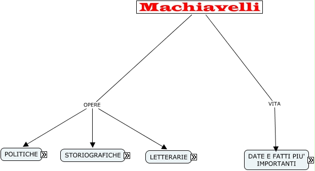 Questa Cmap, creata con IHMC CmapTools, contiene informazioni relative a: Machiavelli - Boffelli Simone, Machiavelli OPERE STORIOGRAFICHE, Istorie fiorentine STILE uso dei discorsi per esporre il suo punto di vista, I discorsi sopra la prima deca di Tito Livio DIVISO IN TRE LIBRI Primo libro: politica interna; leggi; relazione fra religione e politica, uso dei discorsi per esporre il suo punto di vista l'interpretazione dei fatti è più importante della loro esattezza ( punto di vista--> soggettivo), I discorsi sopra la prima deca di Tito Livio DIVISO IN TRE LIBRI Secondo libro: politica estera, guerre,esercito, Il Principe ASPETTI PRINCIPALI DEL TRATTATO E' un'esortazione ai Medici perchè pongano fine alla situazione critica dell'Italia. E' ovviamente una prospettiva utopica che punta sulla forza persuasiva dei sentimenti, Belfagor Arcidiavolo Aspetti Principali - Novella comica - Tradizione misogina - Tema della beffa caro a Boccaccio - Male è un aspetto della realtà, Machiavelli OPERE LETTERARIE, Machiavelli VITA Niccolò Machiavelli nacque a Firenze il 3 maggio del 1469., Dell'arte della guerra ASPETTI PRINCIPALI Le armi da fuoco vengono sottovalutate, viene esaltato l'antico duello faccia a faccia, Istorie fiorentine COMPOSTO DA 8 LIBRI: Primo libro: rassegna storica dell'Italia a partire dalla caduta dell'impero romano, Discorso intorno alla nostra lingua ASPETTI PRINCIPALI Primato della politica sulla letteratura, I discorsi sopra la prima deca di Tito Livio DIVISO IN TRE LIBRI Terzo libro: azione del singolo per la grandezza di Roma, mutamento dello stato, Produzione poetica ASPETTI PRINCIPALI - Poesia d'occasione - Influenza di Lorenzo il Magnifico - Canti carnascialeschi, Machiavelli OPERE POLITICHE, Il Principe STRUTTURA DEL TRATTATO 26 capitoli, Terzo libro: cronaca sempre più analitica fino alla morte di Lorenzo nel 1492 SCOPO Egli interpreta i fatti per trarne degli insegnamenti politici