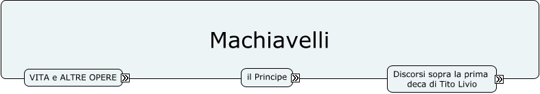 Questa Cmap, creata con IHMC CmapTools, contiene informazioni relative a: Machiavelli francesco ferrari, caratterizzata dall' impegno politico e civile. infatti viene nominato prima responsabile della seconda cancelleria, poi segretario dei dieci di balia(politica estera) e poi gonfaloniere a vita, IL PRINCIPE è un'esortazione alla famiglia dei Medici che deve porre fine alla crisi italiana, di storia: le "Istorie Fiorentine" caratteristiche principali -Più si raggiunge la sua epoca più i fatti diventano precisi -Segue sempre le stesse due fonti, scegliend tra le due e senza metterle a confronto -Si interessa meno della documentazione e più della morale, dell'insegnamento che la storia può darci -Impostata in modo saggistico, comincia il periodo dedicato agli studi e all'attività letteraria scrive: teatro: la "Mandragola" e il "Belfagor arcidiavolo", la fortuna influisce nella storia dell'uomo, ma questo può opporsi e riuscire a vincere tramite la propria virtù infatti gli uomini possono avere due caratteri quello respettivocon il quale si riesce a mantenere lo stato, la religione controlla lo stato perchè crea coesione sociale quindi la religione deve avere la funzione di collante sociale, ma la sua morale non deve influire e/o ostacolare l'esercizio della politica, si abbandona la speculazione puramente filosofica ed etica e si adotta la forma del saggio nel IL PRINCIPE, fondato sull'esperienza e sulle prove che l'autore stesso prova e sostiene per Machiavelli si basa sulla conoscenza delle leggi della natura e sullo studio della storia, un principe non deve farsi influenzare da qualsiasi morale quindi l'unica morale consentita è quella che porta il bene dello stato, Discorsi sopra la prima deca di Tito Livio iniziata nel 1513 e finita nel 1518 caratteristiche -prende spunto la repubblica romana -vi è un'esaltazione dell'esem_ plarità della Roma repubblicana in confronto a quella imperiale -l'evoluzione del corso della storia non cambia la base naturale dell'uomo, ergo il suo modo di agire,pensare,ecc., la fortuna influisce nella storia dell'uomo, ma questo può opporsi e riuscire a vincere tramite la propria virtù infatti gli uomini possono avere due caratteri comunque una persona ne ha solo uno dei due dalla nascita, Discorsi sopra la prima deca di Tito Livio iniziata nel 1513 e finita nel 1518 è un opera varia, composta in 3 libri, un opera varia, composta in 3 libri libro 1 commenta e parla della politica interna di Roma, un opera varia, composta in 3 libri libro 3 parla del ruolo che hanno i singoli nello stato romano, si abbandona la speculazione puramente filosofica ed etica e si adotta la forma del saggio quindi fondato sull'esperienza e sulle prove che l'autore stesso prova e sostiene, come deve agire un principe secondo Machiavelli un principe ha successo se la sua politica ha successo, Machiavelli nasce a Firenze nel 1469. la sua vita si può dividere in due fasi; muore nel 1517 testimoniata dalle lettere che inviava agli amici e ai parenti., Machiavelli nasce a Firenze nel 1469. la sua vita si può dividere in due fasi; muore nel 1517 fase 2 (dal 1512 alla morte) nel 1512 viene privato di ogni incarico politico e va "in esilio" in un suo podere, per la nascita di uno stato è meglio la monarchia, successivamente per farlo durare più a lungo è meglio adottare la repubblica di tipo "misto" perchè nella repubblica ognuno porta le proprie idee che corrispondono a un gruppo di persone che si identificano in esse, viene nominato prima responsabile della seconda cancelleria, poi segretario dei dieci di balia(politica estera) e poi gonfaloniere a vita in seguito è eletto segretario della milizia cittadina