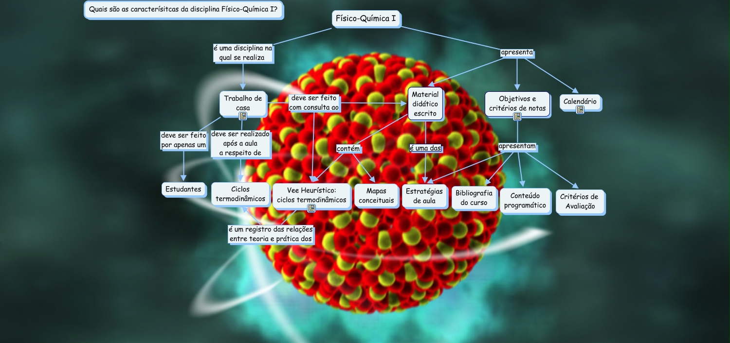 Esse mapa conceitual, produzido no IHMC CmapTools, tem a informação relacionada a: FQ, Físico-Química I é uma disciplina na qual se realiza Trabalho de casa, Objetivos e critérios de notas apresentam Conteúdo programático, Trabalho de casa deve ser feito com consulta ao Vee Heurístico: ciclos termodinâmicos, Trabalho de casa deve ser feito por apenas um Estudantes, Vee Heurístico: ciclos termodinâmicos é um registro das relações entre teoria e prática dos Ciclos termodinâmicos, Objetivos e critérios de notas apresentam Critérios de Avaliação, Objetivos e critérios de notas apresentam Bibliografia do curso, Trabalho de casa deve ser realizado após a aula a respeito de Ciclos termodinâmicos, Trabalho de casa deve ser feito com consulta ao Material didático escrito, Físico-Química I apresenta Calendário, Material didático escrito é uma das Estratégias de aula, Objetivos e critérios de notas apresentam Estratégias de aula, Material didático escrito contém Mapas conceituais, Físico-Química I apresenta Material didático escrito, Físico-Química I apresenta Objetivos e critérios de notas, Material didático escrito contém Vee Heurístico: ciclos termodinâmicos