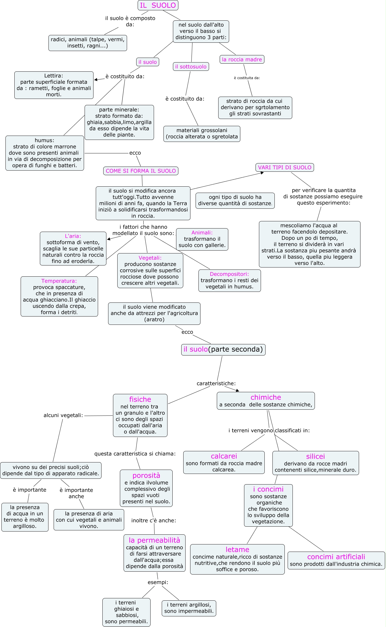 Questa Cmap, creata con IHMC CmapTools, contiene informazioni relative a: ale_matty_viky, mappa del suolo, COME SI FORMA IL SUOLO ???? il suolo si modifica ancora tutt'oggi.Tutto avvenne milioni di anni fa, quando la Terra iniziò a solidificarsi trasformandosi in roccia., fisiche nel terreno tra un granulo e l'altro ci sono degli spazi occupati dall'aria o dall'acqua. questa caratteristica si chiama: porosità e indica ilvolume complessivo degli spazi vuoti presenti nel suolo., il suolo si modifica ancora tutt'oggi.Tutto avvenne milioni di anni fa, quando la Terra iniziò a solidificarsi trasformandosi in roccia. i fattori che hanno modellato il suolo sono: Decompositori: trasformano i resti dei vegetali in humus., nel suolo dall'alto verso il basso si distinguono 3 parti: ???? il sottosuolo, il suolo(parte seconda) caratteristiche: fisiche nel terreno tra un granulo e l'altro ci sono degli spazi occupati dall'aria o dall'acqua., il suolo(parte seconda) caratteristiche: chimiche a seconda delle sostanze chimiche,, i concimi sono sostanze organiche che favoriscono lo sviluppo della vegetazione. ???? letame concime naturale,ricco di sostanze nutritive,che rendono il suolo più soffice e poroso., il suolo è costituito da: parte minerale: strato formato da: ghiaia,sabbia,limo,argilla da esso dipende la vita delle piante., il suolo è costituito da: humus: strato di colore marrone dove sono presenti animali in via di decomposizione per opera di funghi e batteri., il sottosuolo è costituito da: materiali grossolani (roccia alterata o sgretolata, VARI TIPI DI SUOLO per verificare la quantita di sostanze possiamo eseguire questo esperimento: mescoliamo l'acqua al terreno facendolo depositare. Dopo un po di tempo, il terreno si dividerà in vari strati.La sostanza piu pesante andrà verso il basso, quella piu leggera verso l'alto., IL SUOLO il suolo è composto da: radici, animali (talpe, vermi, insetti, ragni...), i concimi sono sostanze organiche che favoriscono lo sviluppo della vegetazione. ???? concimi artificiali sono prodotti dall'industria chimica., IL SUOLO ???? nel suolo dall'alto verso il basso si distinguono 3 parti:, il suolo si modifica ancora tutt'oggi.Tutto avvenne milioni di anni fa, quando la Terra iniziò a solidificarsi trasformandosi in roccia. i fattori che hanno modellato il suolo sono: L'aria: sottoforma di vento, scaglia le sue particelle naturali contro la roccia fino ad eroderla., il suolo si modifica ancora tutt'oggi.Tutto avvenne milioni di anni fa, quando la Terra iniziò a solidificarsi trasformandosi in roccia. i fattori che hanno modellato il suolo sono: Animali: trasformano il suolo con gallerie., la permeabilità capacità di un terreno di farsi attraversare dall'acqua;essa dipende dalla porosità esempi: i terreni ghiaiosi e sabbiosi, sono permeabili., Vegetali: producono sostanze corrosive sulle superfici rocciose dove possono crescere altri vegetali. ???? il suolo viene modificato anche da attrezzi per l'agricoltura (aratro), il suolo viene modificato anche da attrezzi per l'agricoltura (aratro) ecco il suolo(parte seconda), nel suolo dall'alto verso il basso si distinguono 3 parti: ???? la roccia madre