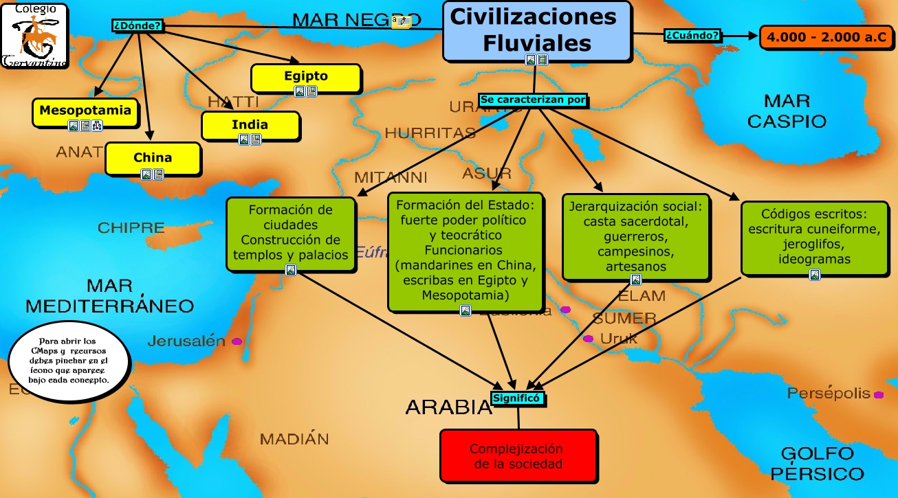 Este Cmap, tiene información relacionada con: Civilizaciones Fluviales, Civilizaciones Fluviales ¿Dónde? Mesopotamia, Civilizaciones Fluviales ¿Dónde? China, Civilizaciones Fluviales Se caracterizan por Jerarquización social: casta sacerdotal, guerreros, campesinos, artesanos, Civilizaciones Fluviales Se caracterizan por Formación del Estado: fuerte poder político y teocrático Funcionarios (mandarines en China, escribas en Egipto y Mesopotamia), Civilizaciones Fluviales Se caracterizan por Códigos escritos: escritura cuneiforme, jeroglifos, ideogramas, Civilizaciones Fluviales Se caracterizan por Formación de ciudades Construcción de templos y palacios, Civilizaciones Fluviales ¿Cuándo? 4.000 - 2.000 a.C, Civilizaciones Fluviales ¿Dónde? Egipto, Civilizaciones Fluviales ¿Dónde? India