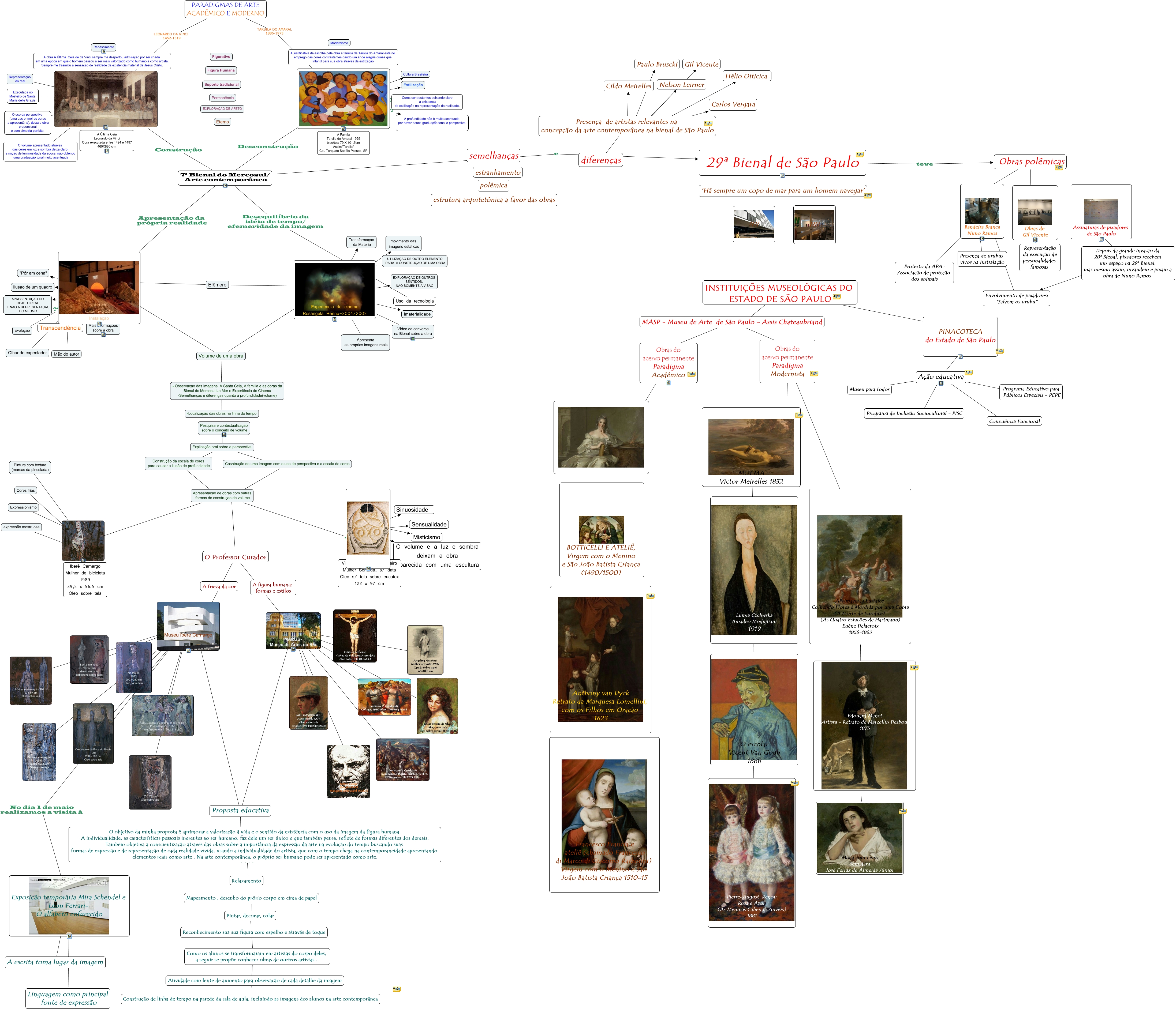 Esse mapa conceitual, produzido no IHMC CmapTools, tem a informação relacionada a: MApa conceitual do seminário dois, Efêmero ???? La mer Cabelo-2009 Instalaçao, O Professor Curador ???? Museu Ibere Camargo, MOEMA Victor Meirelles 1832 ???? O escolar Vicent Van Gogh 1888, O escolar Vicent Van Gogh 1888 ???? Pierre-August Renoir Rosa e Azul (As Meninas Cahen d´Anvers) 1881, Museu Ibere Camargo ???? No tempo 1992 200 x 250 cm Óleo sobre tela, O uso da perspectiva (uma das primeiras obras a apresentá-lá), deixa a obra proporcional e com simetria perfeita. ????, La mer Cabelo-2009 Instalaçao ???? "Pôr em cena", Museu Ibere Camargo ???? Crepúsculo da Boca do Monte 1991 200 x 283 cm Óleo sobre tela, ???? Cultura Brasileira, ???? Cores contrastantes deixando claro a existencia de estilização na representação da realidade., Museu Ibere Camargo ???? Proposta educativa, MARGS- Museu de Artes do Rio ???? Júlio GAVRONSKI Auto-perfil, 1904 óleo sobre tela colada sobre papelão 33x26, Presença de artistas relevantes na concepção da arte contemporânea na bienal de São Paulo ???? Gil Vicente, ???? Pintura com textura (marcas da pincelada), Efêmero ???? Experiencia de cinema Rosangela Renno-2004/2005, INSTITUIÇÕES MUSEOLÓGICAS DO ESTADO DE SÃO PAULO ???? MASP - Museu de Arte de São Paulo - Assis Chateaubriand, Bandeira Branca Nuno Ramos ???? Protesto da APA- Associação de proteção dos animais, Apresentaçao de obras com outras formas de construçao de volume ????, 7ª Bienal do Mercosul/ Arte contemporânea Apresentação da própria realidade La mer Cabelo-2009 Instalaçao, O objetivo da minha proposta é aprimorar a valorização à vida e o sentido da existência com o uso da imagem da figura humana. A individualidade, as características pessoais inerentes ao ser humano, faz dele um ser único e que também pensa, reflete de formas diferentes dos demais. Também objetiva a conscientização através das obras sobre a importância da expressão da arte na evolução do tempo buscando suas formas de expressão e de representação de cada realidade vivida, usando a individualidade do artista, que com o tempo chega na contemporaneidade apresentando elementos reais como arte . Na arte contemporânea, o próprio ser humano pode ser apresentado como arte. ???? Relaxamento