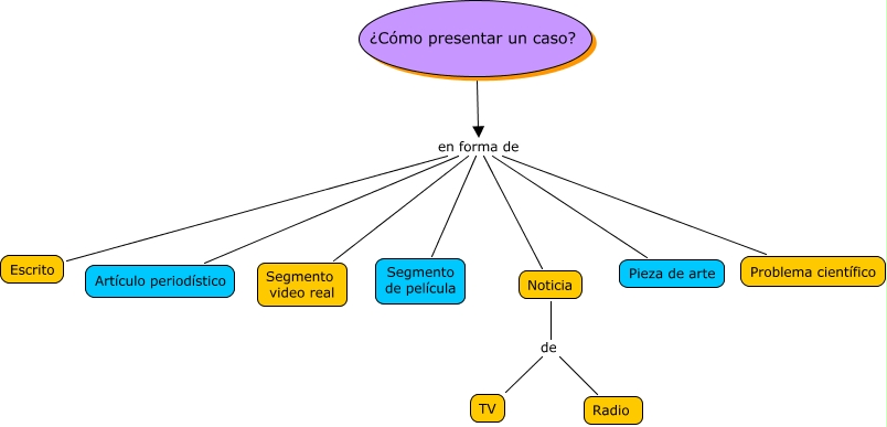 Este Cmap, tiene información relacionada con: Cómo presentar un caso, ¿Cómo presentar un caso? en forma de Segmento de película, ¿Cómo presentar un caso? en forma de Escrito, ¿Cómo presentar un caso? en forma de Segmento video real, Noticia de TV, ¿Cómo presentar un caso? en forma de Noticia, Noticia de Radio, ¿Cómo presentar un caso? en forma de Problema científico, ¿Cómo presentar un caso? en forma de Artículo periodístico, ¿Cómo presentar un caso? en forma de Pieza de arte