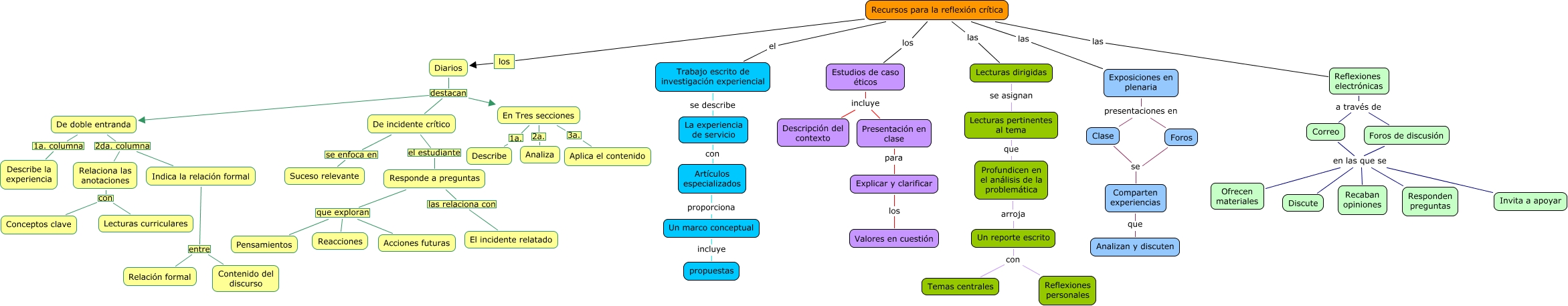Este Cmap, tiene información relacionada con: Recursos para la reflexion.cmap, Correo en las que se Discute, Diarios destacan De doble entranda, Diarios destacan En Tres secciones, Un reporte escrito con Reflexiones personales, Lecturas pertinentes al tema que Profundicen en el análisis de la problemática, Lecturas dirigidas se asignan Lecturas pertinentes al tema, Estudios de caso éticos incluye Descripción del contexto, Trabajo escrito de investigación experiencial se describe La experiencia de servicio, En Tres secciones 2a. Analiza, Un reporte escrito con Temas centrales, Correo en las que se Responden preguntas, De incidente crítico el estudiante Responde a preguntas, Responde a preguntas las relaciona con El incidente relatado, Artículos especializados proporciona Un marco conceptual, Estudios de caso éticos incluye Presentación en clase, La experiencia de servicio con Artículos especializados, Indica la relación formal entre Contenido del discurso, Recursos para la reflexión crítica las Lecturas dirigidas, Foros de discusión en las que se Invita a apoyar, Correo en las que se Ofrecen materiales