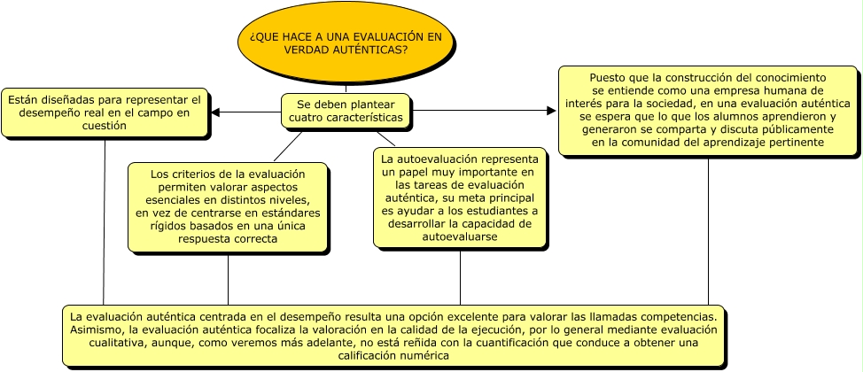 Este Cmap, tiene información relacionada con: ev aut, Los criterios de la evaluación permiten valorar aspectos esenciales en distintos niveles, en vez de centrarse en estándares rígidos basados en una única respuesta correcta ???? La evaluación auténtica centrada en el desempeño resulta una opción excelente para valorar las llamadas competencias. Asimismo, la evaluación auténtica focaliza la valoración en la calidad de la ejecución, por lo general mediante evaluación cualitativa, aunque, como veremos más adelante, no está reñida con la cuantificación que conduce a obtener una calificación numérica, Se deben plantear cuatro características ???? Están diseñadas para representar el desempeño real en el campo en cuestión, La autoevaluación representa un papel muy importante en las tareas de evaluación auténtica, su meta principal es ayudar a los estudiantes a desarrollar la capacidad de autoevaluarse ???? La evaluación auténtica centrada en el desempeño resulta una opción excelente para valorar las llamadas competencias. Asimismo, la evaluación auténtica focaliza la valoración en la calidad de la ejecución, por lo general mediante evaluación cualitativa, aunque, como veremos más adelante, no está reñida con la cuantificación que conduce a obtener una calificación numérica, Se deben plantear cuatro características ???? Los criterios de la evaluación permiten valorar aspectos esenciales en distintos niveles, en vez de centrarse en estándares rígidos basados en una única respuesta correcta, ¿QUE HACE A UNA EVALUACIÓN EN VERDAD AUTÉNTICAS? ???? Se deben plantear cuatro características, Están diseñadas para representar el desempeño real en el campo en cuestión ???? La evaluación auténtica centrada en el desempeño resulta una opción excelente para valorar las llamadas competencias. Asimismo, la evaluación auténtica focaliza la valoración en la calidad de la ejecución, por lo general mediante evaluación cualitativa, aunque, como veremos más adelante, no está reñida con la cuantificación que conduce a obtener una calificación numérica, Se deben plantear cuatro características ???? La autoevaluación representa un papel muy importante en las tareas de evaluación auténtica, su meta principal es ayudar a los estudiantes a desarrollar la capacidad de autoevaluarse, Puesto que la construcción del conocimiento se entiende como una empresa humana de interés para la sociedad, en una evaluación auténtica se espera que lo que los alumnos aprendieron y generaron se comparta y discuta públicamente en la comunidad del aprendizaje pertinente ???? La evaluación auténtica centrada en el desempeño resulta una opción excelente para valorar las llamadas competencias. Asimismo, la evaluación auténtica focaliza la valoración en la calidad de la ejecución, por lo general mediante evaluación cualitativa, aunque, como veremos más adelante, no está reñida con la cuantificación que conduce a obtener una calificación numérica, Se deben plantear cuatro características ???? Puesto que la construcción del conocimiento se entiende como una empresa humana de interés para la sociedad, en una evaluación auténtica se espera que lo que los alumnos aprendieron y generaron se comparta y discuta públicamente en la comunidad del aprendizaje pertinente
