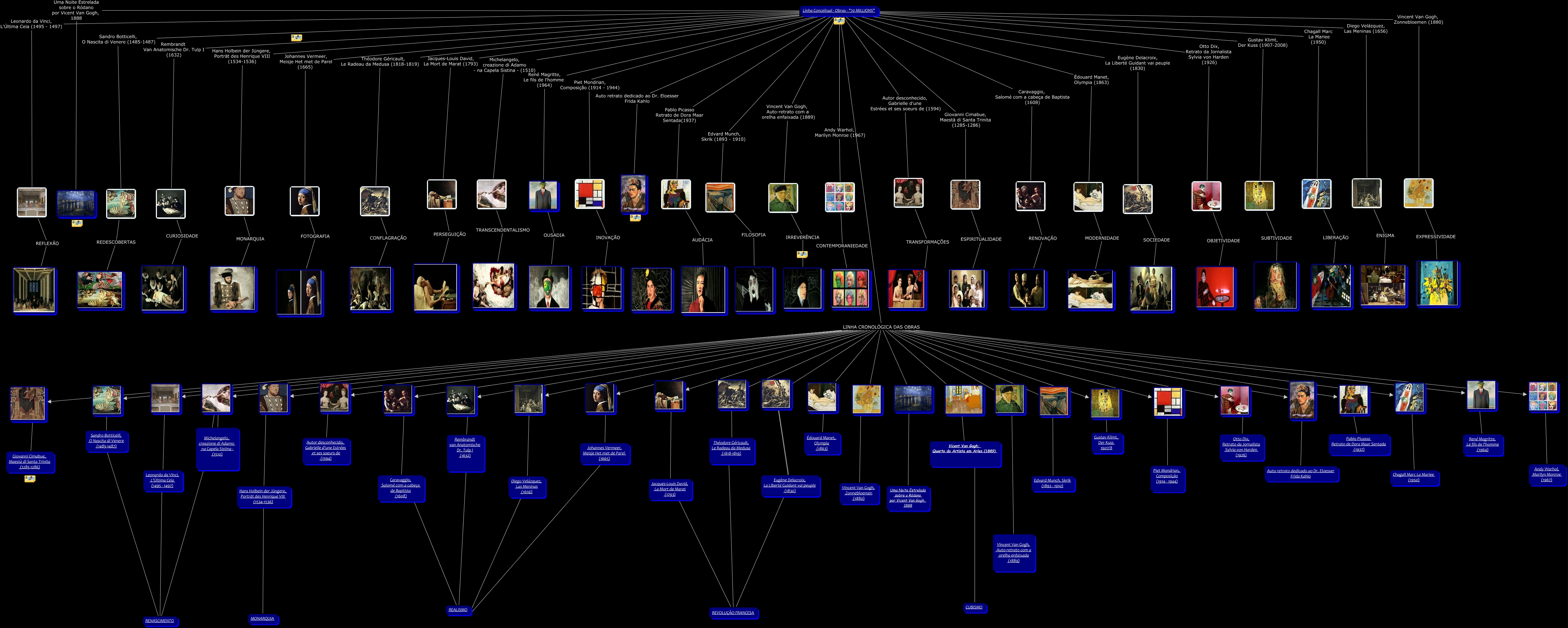 Esse mapa conceitual, produzido no IHMC CmapTools, tem a informação relacionada a: TEMPO E CONCEITO NO DESENVOLVIMENTO DA ARTE, A PARTIR DO VIDEO 70 MILLION (em construção), FOTOGRAFIA, Johannes Vermeer, Meisje Het met de Parel (1665) ???? REALISMO, Linha Conceitual - Obras - "70 MILLIONS" LINHA CRONOLÓGICA DAS OBRAS, LINHA CRONOLÓGICA DAS OBRAS, Linha Conceitual - Obras - "70 MILLIONS" LINHA CRONOLÓGICA DAS OBRAS, Leonardo da Vinci, L'Última Ceia (1495 - 1497) ???? RENASCIMENTO, CONTEMPORANIEDADE, LINHA CRONOLÓGICA DAS OBRAS, Linha Conceitual - Obras - "70 MILLIONS" Giovanni Cimabue, Maestà di Santa Trinita (1285-1286), CURIOSIDADE, Linha Conceitual - Obras - "70 MILLIONS" LINHA CRONOLÓGICA DAS OBRAS, ???? Rembrandt van Anatomische Dr. Tulp I (1632), LINHA CRONOLÓGICA DAS OBRAS, Linha Conceitual - Obras - "70 MILLIONS" Auto retrato dedicado ao Dr. Eloesser Frida Kahlo, TRANSFORMAÇÕES, ???? Pablo Picasso Retrato de Dora Maar Sentada (1937), CONFLAGRAÇÃO, Linha Conceitual - Obras - "70 MILLIONS" LINHA CRONOLÓGICA DAS OBRAS, ???? Otto Dix, Retrato da Jornalista Sylvia von Harden (1926), Linha Conceitual - Obras - "70 MILLIONS" Chagall Marc La Mariee (1950)