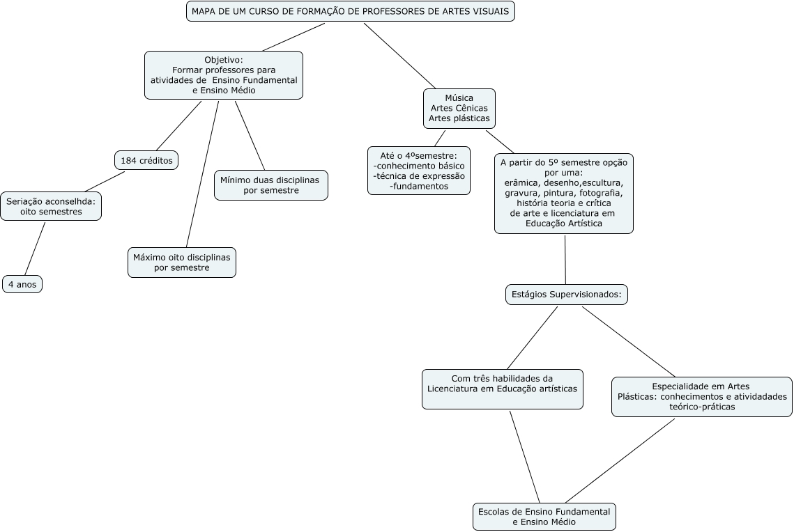 Esse mapa conceitual, produzido no IHMC CmapTools, tem a informação relacionada a: Mapa Currículo de um curso de professores de artes visuais