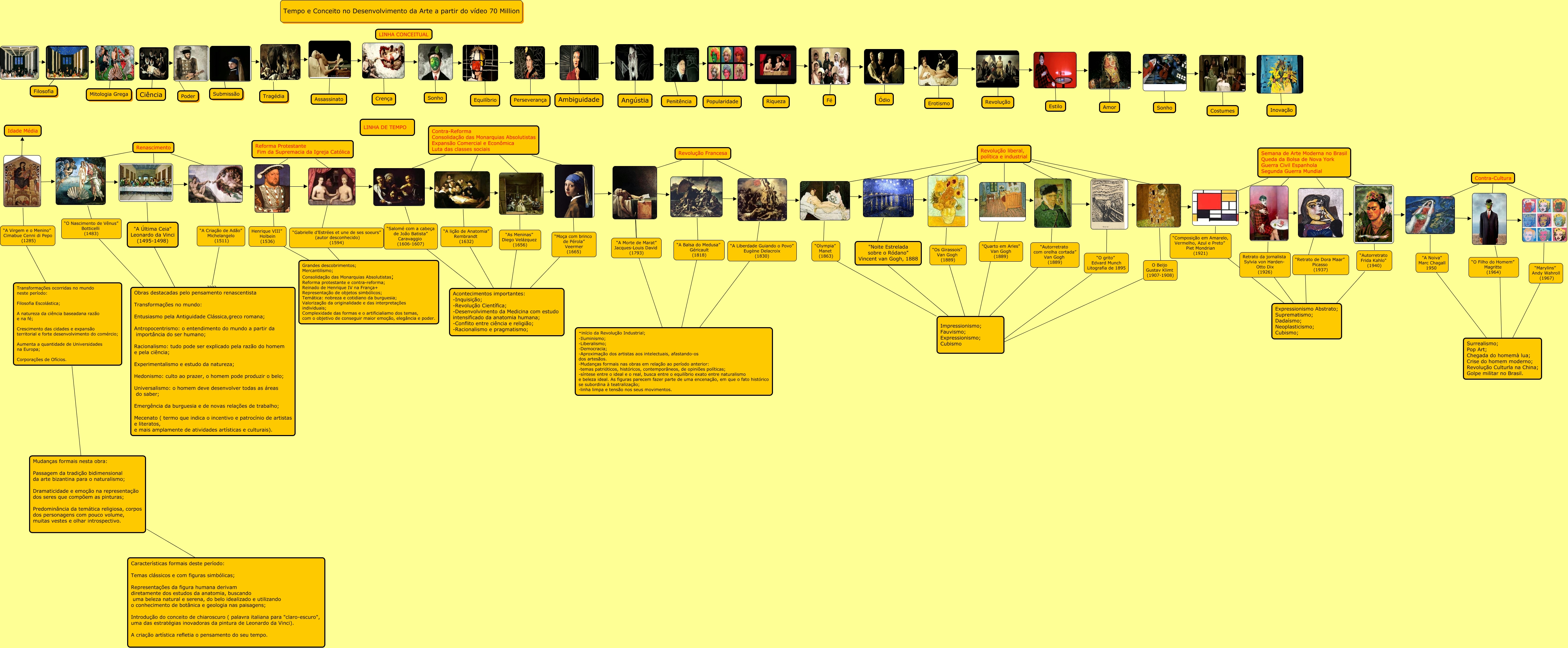 This Concept Map, created with IHMC CmapTools, has information related to: Tempo e Conceito no Desenvolvimento da Arte, a partir do vídeo 70 Million Daniela defferrari