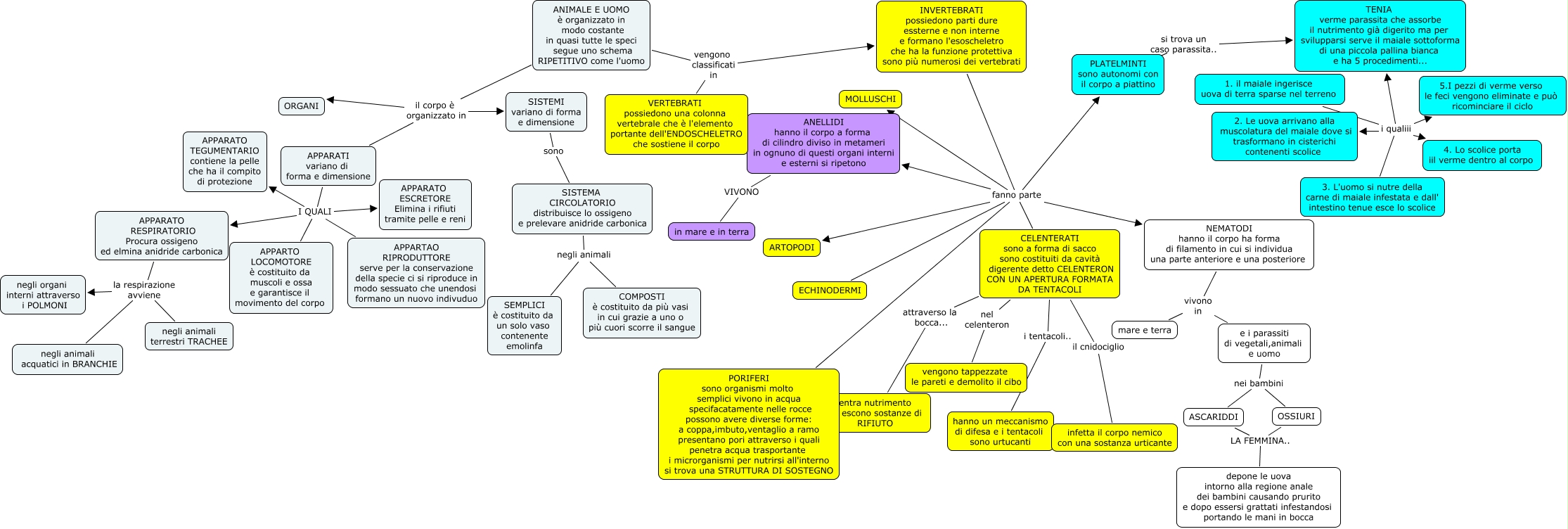 Questa Cmap, creata con IHMC CmapTools, contiene informazioni relative a: beppe un modello comune 1.cmap, ASCARIDDI LA FEMMINA.. depone le uova intorno alla regione anale dei bambini causando prurito e dopo essersi grattati infestandosi portando le mani in bocca, e i parassiti di vegetali,animali e uomo nei bambini OSSIURI, APPARATO RESPIRATORIO Procura ossigeno ed elmina anidride carbonica la respirazione avviene negli animali terrestri TRACHEE, NEMATODI hanno il corpo ha forma di filamento in cui si individua una parte anteriore e una posteriore vivono in e i parassiti di vegetali,animali e uomo, APPARATO RESPIRATORIO Procura ossigeno ed elmina anidride carbonica la respirazione avviene negli animali acquatici in BRANCHIE, APPARATI variano di forma e dimensione I QUALI APPARTO LOCOMOTORE è costituito da muscoli e ossa e garantisce il movimento del corpo, ANIMALE E UOMO è organizzato in modo costante in quasi tutte le speci segue uno schema RIPETITIVO come l'uomo vengono classificati in INVERTEBRATI possiedono parti dure essterne e non interne e formano l'esoscheletro che ha la funzione protettiva sono più numerosi dei vertebrati, APPARATI variano di forma e dimensione I QUALI APPARATO TEGUMENTARIO contiene la pelle che ha il compito di protezione, CELENTERATI sono a forma di sacco sono costituiti da cavità digerente detto CELENTERON CON UN APERTURA FORMATA DA TENTACOLI attraverso la bocca... entra nutrimento ma escono sostanze di RIFIUTO, OSSIURI LA FEMMINA.. depone le uova intorno alla regione anale dei bambini causando prurito e dopo essersi grattati infestandosi portando le mani in bocca, 1. il maiale ingerisce uova di terra sparse nel terreno i qualiii 2. Le uova arrivano alla muscolatura del maiale dove si trasformano in cisterichi contenenti scolice, INVERTEBRATI possiedono parti dure essterne e non interne e formano l'esoscheletro che ha la funzione protettiva sono più numerosi dei vertebrati fanno parte PORIFERI sono organismi molto semplici vivono in acqua specifacatamente nelle rocce possono avere diverse forme: a coppa,imbuto,ventaglio a ramo presentano pori attraverso i quali penetra acqua trasportante i microrganismi per nutrirsi all'interno si trova una STRUTTURA DI SOSTEGNO, SISTEMA CIRCOLATORIO distribuisce lo ossigeno e prelevare anidride carbonica negli animali SEMPLICI è costituito da un solo vaso contenente emolinfa, INVERTEBRATI possiedono parti dure essterne e non interne e formano l'esoscheletro che ha la funzione protettiva sono più numerosi dei vertebrati fanno parte ECHINODERMI, INVERTEBRATI possiedono parti dure essterne e non interne e formano l'esoscheletro che ha la funzione protettiva sono più numerosi dei vertebrati fanno parte CELENTERATI sono a forma di sacco sono costituiti da cavità digerente detto CELENTERON CON UN APERTURA FORMATA DA TENTACOLI, INVERTEBRATI possiedono parti dure essterne e non interne e formano l'esoscheletro che ha la funzione protettiva sono più numerosi dei vertebrati fanno parte ARTOPODI, APPARATI variano di forma e dimensione I QUALI APPARATO ESCRETORE Elimina i rifiuti tramite pelle e reni, CELENTERATI sono a forma di sacco sono costituiti da cavità digerente detto CELENTERON CON UN APERTURA FORMATA DA TENTACOLI nel celenteron vengono tappezzate le pareti e demolito il cibo, INVERTEBRATI possiedono parti dure essterne e non interne e formano l'esoscheletro che ha la funzione protettiva sono più numerosi dei vertebrati fanno parte ANELLIDI hanno il corpo a forma di cilindro diviso in metameri in ognuno di questi organi interni e esterni si ripetono, 1. il maiale ingerisce uova di terra sparse nel terreno i qualiii 5.I pezzi di verme verso le feci vengono eliminate e può ricominciare il ciclo