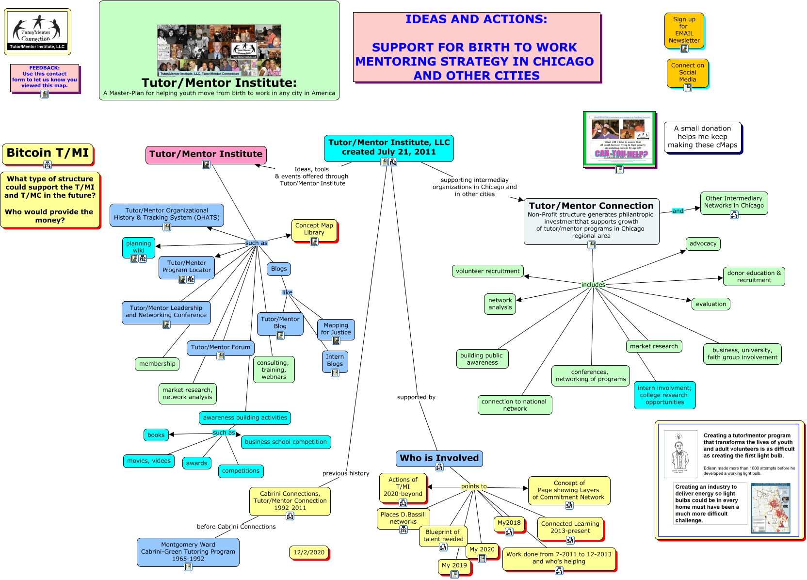 This Concept Map, created with IHMC CmapTools, has information related to: tutormentorinstitute, Tutor/Mentor Institute such as membership, awareness building activities such as competitions, Tutor/Mentor Connection Non-Profit structure generates philantropic investmentthat supports growth of tutor/mentor programs in Chicago regional area includes business, university, faith group involvement, Tutor/Mentor Institute, LLC created July 21, 2011 Ideas, tools & events offered through Tutor/Mentor Institute Tutor/Mentor Institute, Who is Involved points to My 2020, Blogs like Mapping for Justice, Tutor/Mentor Connection Non-Profit structure generates philantropic investmentthat supports growth of tutor/mentor programs in Chicago regional area includes network analysis, Tutor/Mentor Connection Non-Profit structure generates philantropic investmentthat supports growth of tutor/mentor programs in Chicago regional area includes evaluation, Tutor/Mentor Institute, LLC created July 21, 2011 supported by Who is Involved, Tutor/Mentor Connection Non-Profit structure generates philantropic investmentthat supports growth of tutor/mentor programs in Chicago regional area includes conferences, networking of programs, Tutor/Mentor Institute such as Tutor/Mentor Organizational History & Tracking System (OHATS), awareness building activities such as business school competition, Cabrini Connections, Tutor/Mentor Connection 1992-2011 before Cabrini Connections Montgomery Ward Cabrini-Green Tutoring Program 1965-1992, awareness building activities such as movies, videos, Blogs like Intern Blogs, Who is Involved points to Blueprint of talent needed, Tutor/Mentor Institute such as Tutor/Mentor Leadership and Networking Conference, Tutor/Mentor Institute such as Concept Map Library, Tutor/Mentor Institute such as Blogs, Tutor/Mentor Connection Non-Profit structure generates philantropic investmentthat supports growth of tutor/mentor programs in Chicago regional area includes intern involvment; college research opportunities