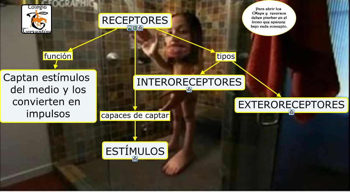 Este Cmap, tiene información relacionada con: 1.1 RECEPTORES, RECEPTORES función Captan estímulos del medio y los convierten en impulsos, RECEPTORES tipos EXTERORECEPTORES, RECEPTORES tipos INTERORECEPTORES, RECEPTORES capaces de captar ESTÍMULOS