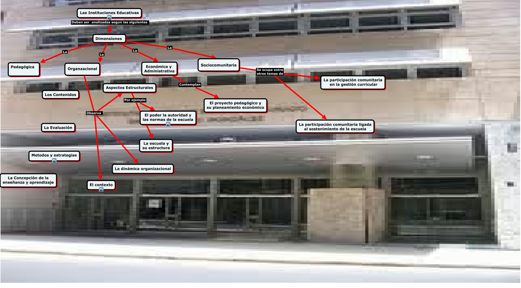 Este Cmap, tiene información relacionada con: Las Instituciones Educativas y su anàlisis, Organzacional Observa El contexto, Aspectos Estructurales Por ejemplo El poder la autoridad y las normas de la escuela, Dimensiones La Pedagógica, Dimensiones La Económica y Administrativa, Sociocomunitaria Se ocupa entre otros temas de La participaciòn comunitaria ligada al sostenimiento de la escuela, Organzacional Observa Aspectos Estructurales, Aspectos Estructurales Por ejemplo La escuela y su estructura, Económica y Administrativa Contemplan El proyecto pedagógico y su planeamiento econòmico, Organzacional Observa La dinámica organizacional, Dimensiones La Organzacional, Dimensiones La Sociocomunitaria, Las Instituciones Educativas Deben ser analizadas segun las siguientes Dimensiones, Sociocomunitaria Se ocupa entre otros temas de La participaciòn comunitaria en la gestiòn curricular