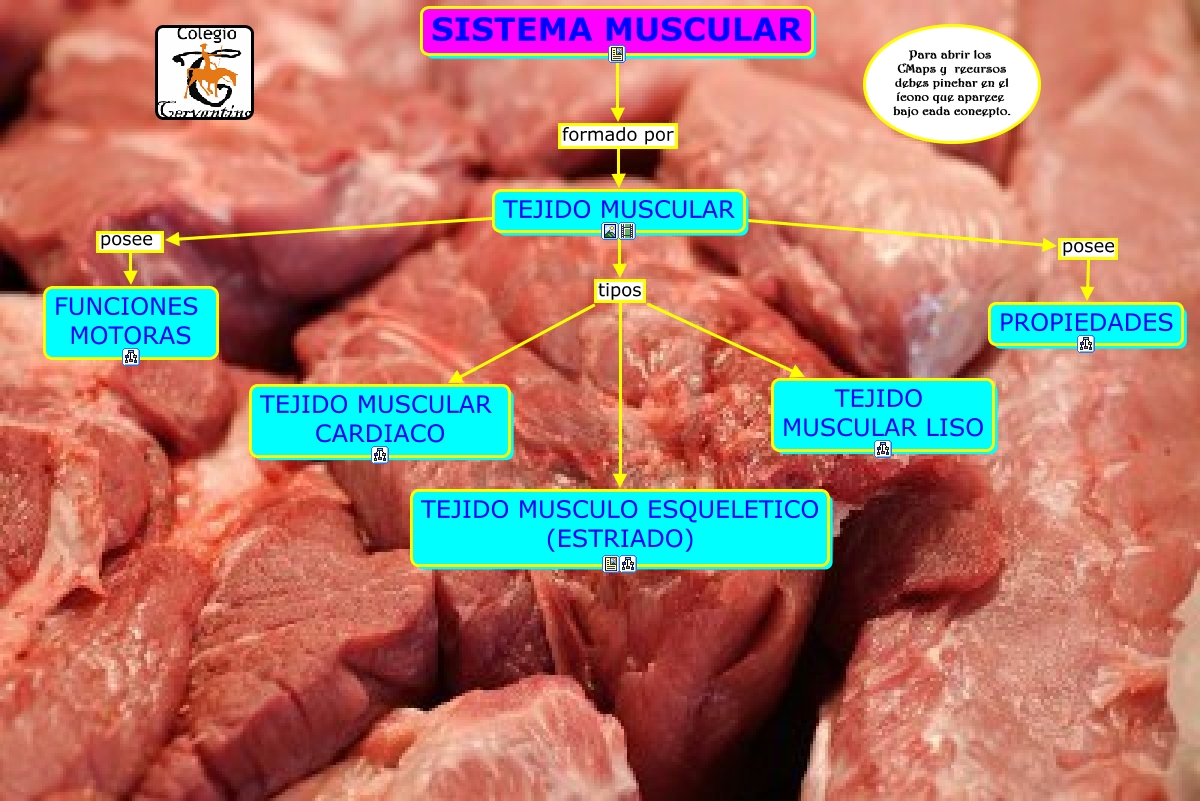 Este Cmap, tiene información relacionada con: 1.1 SISTEMA MUSCULAR, TEJIDO MUSCULAR posee PROPIEDADES, TEJIDO MUSCULAR tipos TEJIDO MUSCULAR CARDIACO, SISTEMA MUSCULAR formado por TEJIDO MUSCULAR, TEJIDO MUSCULAR tipos TEJIDO MUSCULO ESQUELETICO (ESTRIADO), TEJIDO MUSCULAR tipos TEJIDO MUSCULAR LISO, TEJIDO MUSCULAR posee FUNCIONES MOTORAS