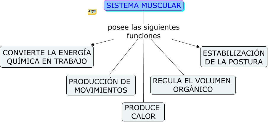 Este Cmap, tiene información relacionada con: FUNCION DEL SISTEMA MUSCULAR, SISTEMA MUSCULAR posee las siguientes funciones PRODUCCIÓN DE MOVIMIENTOS, SISTEMA MUSCULAR posee las siguientes funciones CONVIERTE LA ENERGÍA QUÍMICA EN TRABAJO, SISTEMA MUSCULAR posee las siguientes funciones ESTABILIZACIÓN DE LA POSTURA, SISTEMA MUSCULAR posee las siguientes funciones REGULA EL VOLUMEN ORGÁNICO, SISTEMA MUSCULAR posee las siguientes funciones PRODUCE CALOR