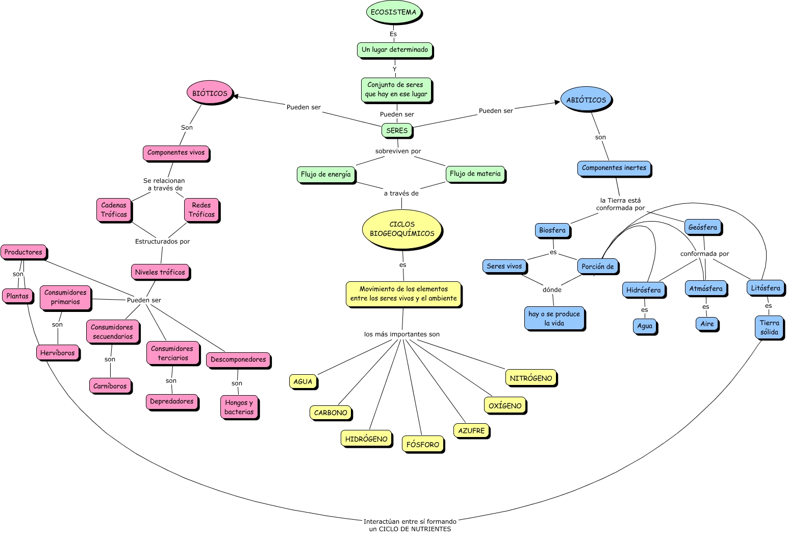 Este Cmap, tiene información relacionada con: ciclosbiogeoquimicos (2).cmap, ????, Flujo de energía a través de Flujo de materia, Movimiento de los elementos entre los seres vivos y el ambiente los más importantes son OXÍGENO, ABIÓTICOS son Componentes inertes, Biosfera es Seres vivos, Componentes vivos Se relacionan a través de Redes Tróficas, Seres vivos dónde hay o se produce la vida, Niveles tróficos Pueden ser Consumidores terciarios, Productores son Plantas, Biosfera es Porción de, Movimiento de los elementos entre los seres vivos y el ambiente los más importantes son NITRÓGENO, Componentes vivos Se relacionan a través de Cadenas Tróficas, BIÓTICOS Son Componentes vivos, Niveles tróficos Pueden ser Consumidores secuendarios, Consumidores terciarios son Depredadores, Un lugar determinado Y Conjunto de seres que hay en ese lugar, Flujo de energía a través de CICLOS BIOGEOQUÍMICOS, Niveles tróficos Pueden ser Productores, CICLOS BIOGEOQUÍMICOS es Movimiento de los elementos entre los seres vivos y el ambiente, Componentes inertes la Tierra está conformada por Geósfera