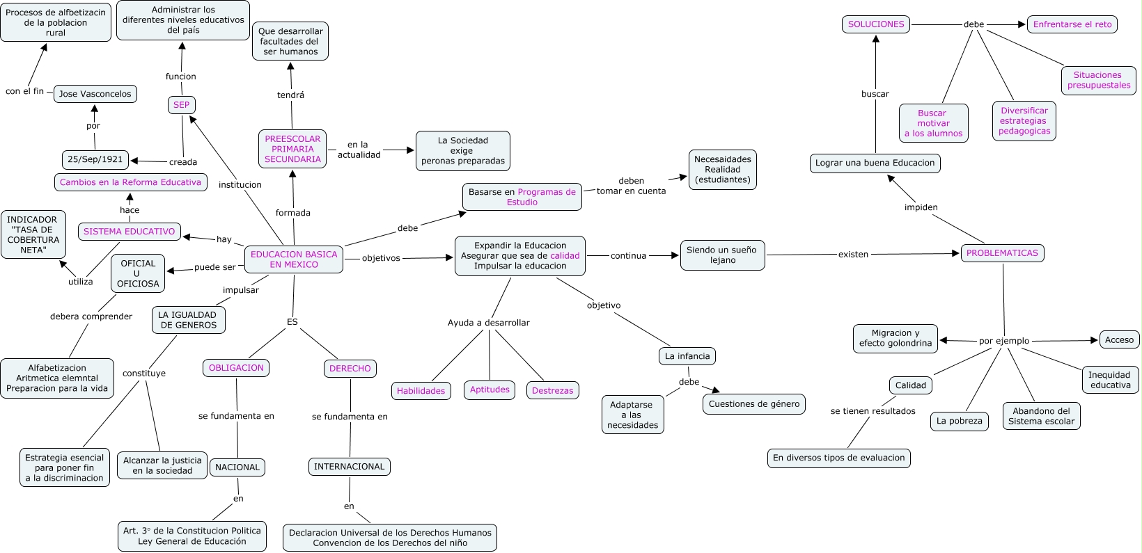 Este Cmap, tiene información relacionada con: PROBLEMAS DE LA EDUACION BASICA, PREESCOLAR PRIMARIA SECUNDARIA en la actualidad La Sociedad exige peronas preparadas, SEP creada 25/Sep/1921, EDUCACION BASICA EN MEXICO puede ser OFICIAL U OFICIOSA, Siendo un sueño lejano existen PROBLEMATICAS, SOLUCIONES debe Enfrentarse el reto, EDUCACION BASICA EN MEXICO hay SISTEMA EDUCATIVO, SOLUCIONES debe Diversificar estrategias pedagogicas, EDUCACION BASICA EN MEXICO ES DERECHO, PREESCOLAR PRIMARIA SECUNDARIA tendrá Que desarrollar facultades del ser humanos, EDUCACION BASICA EN MEXICO impulsar LA IGUALDAD DE GENEROS, La infancia debe Adaptarse a las necesidades, PROBLEMATICAS por ejemplo Migracion y efecto golondrina, OFICIAL U OFICIOSA debera comprender Alfabetizacion Aritmetica elemntal Preparacion para la vida, Jose Vasconcelos con el fin Procesos de alfbetizacin de la poblacion rural, EDUCACION BASICA EN MEXICO objetivos Expandir la Educacion Asegurar que sea de calidad Impulsar la educacion, La infancia debe Cuestiones de género, LA IGUALDAD DE GENEROS constituye Alcanzar la justicia en la sociedad, SOLUCIONES debe Situaciones presupuestales, Lograr una buena Educacion buscar SOLUCIONES, Expandir la Educacion Asegurar que sea de calidad Impulsar la educacion Ayuda a desarrollar Habilidades