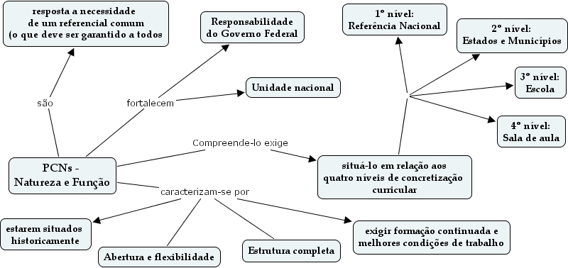 PCNs - Natureza e Fun��o fortalecem Responsabilidade do Governo Federal, PCNs - Natureza e Fun��o fortalecem Unidade nacional, PCNs - Natureza e Fun��o caracterizam-se por Estrutura completa, PCNs - Natureza e Fun��o caracterizam-se por Abertura e flexibilidade, PCNs - Natureza e Fun��o caracterizam-se por estarem situados historicamente, PCNs - Natureza e Fun��o caracterizam-se por exigir forma��o continuada e melhores condi��es de trabalho, situ�-lo em rela��o aos quatro n�veis de concretiza��o curricular 1� n�vel: Refer�ncia Nacional, situ�-lo em rela��o aos quatro n�veis de concretiza��o curricular 3� n�vel: Escola, situ�-lo em rela��o aos quatro n�veis de concretiza��o curricular 4� n�vel: Sala de aula, situ�-lo em rela��o aos quatro n�veis de concretiza��o curricular 2� n�vel: Estados e Munic�pios, PCNs - Natureza e Fun��o Compreende-lo exige situ�-lo em rela��o aos quatro n�veis de concretiza��o curricular, PCNs - Natureza e Fun��o s�o resposta a necessidade de um referencial comum (o que deve ser garantido a todos