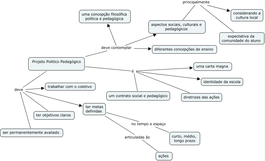Esse mapa conceitual, produzido no IHMC CmapTools, tem a informação relacionada a: Noturno PPP - o que é (construção coletiva inicial), Projeto Politico Pedagógico deve trabalhar com o coletivo, Projeto Politico Pedagógico deve ter objetivos claros, aspectos sociais, culturais e pedagógicos principalmente expectativa da comunidade do aluno, Projeto Politico Pedagógico é um contrato social e pedagógico, Projeto Politico Pedagógico é identidade da escola, ter metas definidas articuladas às ações, Projeto Politico Pedagógico deve contemplar uma concepção filosófica política e pedagógica, aspectos sociais, culturais e pedagógicos principalmente considerando a cultura local, ter metas definidas no tempo e espaço curto, médio, longo prazo, Projeto Politico Pedagógico deve contemplar diferentes concepções de ensino, Projeto Politico Pedagógico deve contemplar aspectos sociais, culturais e pedagógicos, Projeto Politico Pedagógico deve ser permanentemente avaliado, Projeto Politico Pedagógico é diretrizes das ações, Projeto Politico Pedagógico deve ter metas definidas, Projeto Politico Pedagógico é uma carta magna