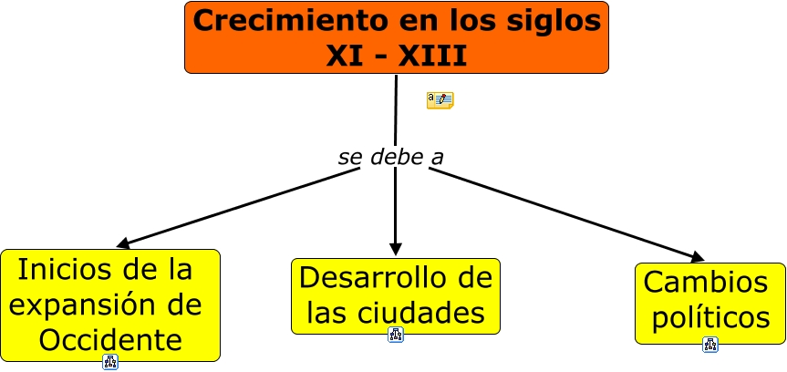 Este Cmap, tiene información relacionada con: Crecimiento en los siglos XI y XIII, Crecimiento en los siglos XI - XIII se debe a Desarrollo de las ciudades, Crecimiento en los siglos XI - XIII se debe a Inicios de la expansión de Occidente, Crecimiento en los siglos XI - XIII se debe a Cambios políticos