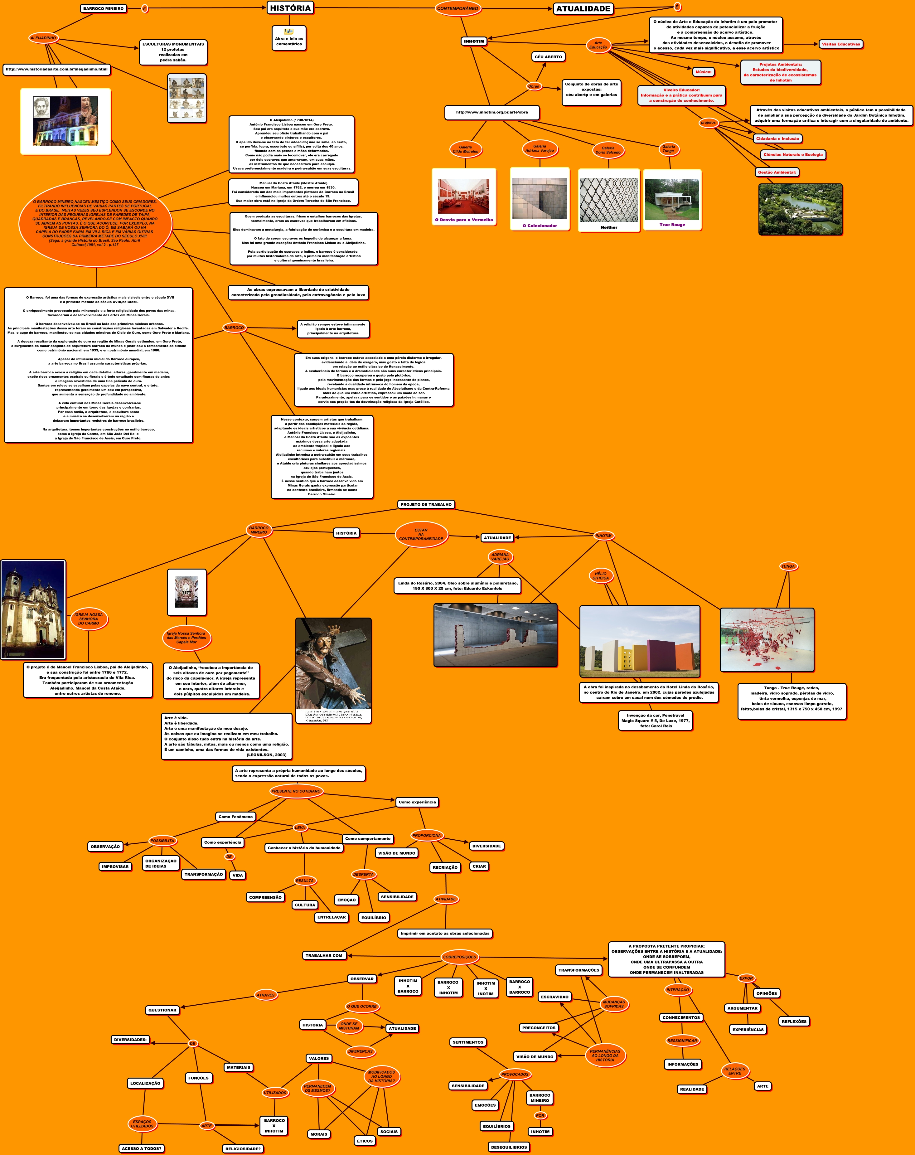 Esse mapa conceitual, produzido no IHMC CmapTools, tem a informação relacionada a: MAPA CONCEITUAL - MINAS EM 15 DE JANEIRO DE 2012, Museu Aleijadinho O BARROCO MINEIRO NASCEU MESTIÇO COMO SEUS CRIADORES, FILTRANDO INFLUÊNCIAS DE VÁRIAS PARTES DE PORTUGAL E DO BRASIL. MUITAS VEZES SEU ESPLENDOR SE ESCONDE NO INTERIOR DAS PEQUENAS IGREJAS DE PAREDES DE TAIPA, QUADRADAS E BRANCAS, REVELANDO-SE COM IMPACTO QUANDO SE ABREM AS PORTAS. É O QUE ACONTECE, POR EXEMPLO, NA IGREJA DE NOSSA SENHORA DO Ó, EM SABARÁ OU NA CAPELA DO PADRE FARIA EM VILA RICA E EM VÁRIAS OUTRAS CONSTRUÇÕES DA PRIMEIRA METADE DO SÉCULO XVIII. (Saga: a grande História do Brasil. São Paulo: Abril Cultural,1981, vol 2 - p.127 As obras expressavam a liberdade de criatividade caracterizada pela grandiosidade, pela extravagância e pelo luxo, INHOTIM Arte Educação Gestão Ambiental:, ???? TUNGA Tunga - True Rouge, redes, madeira, vidro soprado, pérolas de vidro, tinta vermelha, esponjas do mar, bolas de sinuca, escovas limpa-garrafa, feltro,bolas de cristal, 1315 x 750 x 450 cm, 1997, OBSERVAR O QUE OCORRE ATUALIDADE, A PROPOSTA PRETENTE PROPICIAR: OBSERVAÇÕES ENTRE A HISTÓRIA E A ATUALIDADE: ONDE SE SOBREPOEM, ONDE UMA ULTRAPASSA A OUTRA ONDE SE CONFUNDEM ONDE PERMANECEM INALTERADAS RELAÇÕES ENTRE REALIDADE, A PROPOSTA PRETENTE PROPICIAR: OBSERVAÇÕES ENTRE A HISTÓRIA E A ATUALIDADE: ONDE SE SOBREPOEM, ONDE UMA ULTRAPASSA A OUTRA ONDE SE CONFUNDEM ONDE PERMANECEM INALTERADAS EXPOR REFLEXÕES, HISTÓRIA BARROCO MINEIRO ????, SENTIMENTOS PROVOCADOS BARROCO MINEIRO, ???? BARROCO MINEIRO ????, A arte representa a própria humanidade ao longo dos séculos, sendo a expressão natural de todos os povos. PRESENTE NO COTIDIANO Como comportamento, Como experiência PROPORCIONA RECRIAÇÃO, Como experiência PROPORCIONA DIVERSIDADE, A arte representa a própria humanidade ao longo dos séculos, sendo a expressão natural de todos os povos. PRESENTE NO COTIDIANO Como Fenômeno, HISTÓRIA CONTEMPORÂNEO http://www.inhotim.org.br/arte/obra, LOCALIZAÇÃO ESPAÇOS UTILIZADOS BARROCO X INHOTIM, BARROCO MINEIRO ALEIJADINHO Museu Aleijadinho, Museu Aleijadinho O BARROCO MINEIRO NASCEU MESTIÇO COMO SEUS CRIADORES, FILTRANDO INFLUÊNCIAS DE VÁRIAS PARTES DE PORTUGAL E DO BRASIL. MUITAS VEZES SEU ESPLENDOR SE ESCONDE NO INTERIOR DAS PEQUENAS IGREJAS DE PAREDES DE TAIPA, QUADRADAS E BRANCAS, REVELANDO-SE COM IMPACTO QUANDO SE ABREM AS PORTAS. É O QUE ACONTECE, POR EXEMPLO, NA IGREJA DE NOSSA SENHORA DO Ó, EM SABARÁ OU NA CAPELA DO PADRE FARIA EM VILA RICA E EM VÁRIAS OUTRAS CONSTRUÇÕES DA PRIMEIRA METADE DO SÉCULO XVIII. (Saga: a grande História do Brasil. São Paulo: Abril Cultural,1981, vol 2 - p.127 O Barroco, foi uma das formas de expressão artística mais visíveis entre o século XVII e a primeira metade do século XVIII,no Brasil. O enriquecimento provocado pela mineração e a forte religiosidade dos povos das minas, favoreceram o desenvolvimento das artes em Minas Gerais. O barroco desenvolveu-se no Brasil ao lado dos primeiros núcleos urbanos. As principais manifestações dessa arte foram as construções religiosas levantadas em Salvador e Recife. Mas, o auge do barroco, manifestou-se nas cidades mineiras do Ciclo do Ouro, como Ouro Preto e Mariana. A riqueza resultante da exploração do ouro na região de Minas Gerais estimulou, em Ouro Preto, o surgimento do maior conjunto de arquitetura barroca do mundo e justificou o tombamento da cidade como patrimônio nacional, em 1933, e em patrimônio mundial, em 1980. Apesar da influência inicial do Barroco europeu, a arte barroca no Brasil assumiu características próprias. A arte barroca evoca a religião em cada detalhe: altares, geralmente em madeira, expõe ricos ornamentos espirais ou florais e é todo entalhado com figuras de anjos e imagens revestidas de uma fina película de ouro. Santos em relevo se espalham pelas capelas da nave central, e o teto, representando geralmente um céu em perspectiva, que aumenta a sensação de profundidade no ambiente. A vida cultural nas Minas Gerais desenvolveu-se principalmente em torno das Igrejas e confrarias. Por essa razão, a arquitetura, a escultura sacra e a música se desenvolveram na região e deixaram importantes registros do barroco brasileiro. Na arquitetura, temos importantes construções no estilo barroco, como a Igreja do Carmo, em São João Del Rei e a Igreja de São Francisco de Assis, em Ouro Preto., VALORES PERMANECEM OS MESMOS? MORAIS, Como Fenômeno POSSIBILITA OBSERVAÇÃO, http://www.inhotim.org.br/arte/obra Galeria Adriana Varejão O Colecionador