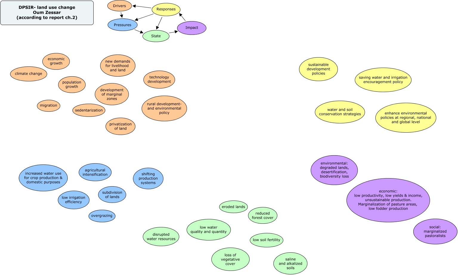 This Concept Map, created with IHMC CmapTools, has information related to: DPSIR_oum zessar_land use, State Impact, Pressures State, Impact Responses, Drivers Pressures, Responses Drivers, Responses State, Responses Pressures