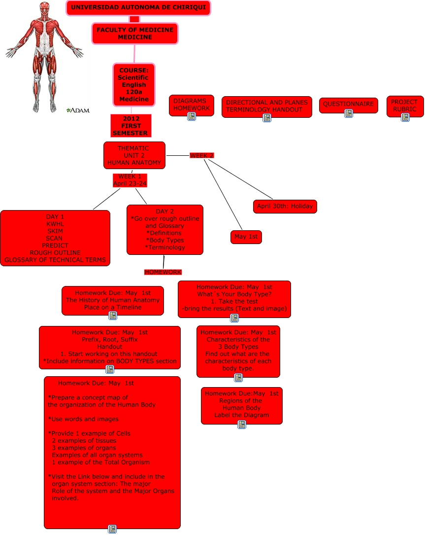Este Cmap, tiene información relacionada con: THEMATIC UNIT 2, DAY 2 *Go over rough outline and Glossary *Definitions *Body Types *Terminology HOMEWORK ????, FACULTY OF MEDICINE MEDICINE COURSE: Scientific English 120a Medicine, THEMATIC UNIT 2 HUMAN ANATOMY WEEK 2 May 1st, THEMATIC UNIT 2 HUMAN ANATOMY WEEK 1 April 23-24 DAY 2 *Go over rough outline and Glossary *Definitions *Body Types *Terminology, THEMATIC UNIT 2 HUMAN ANATOMY WEEK 2 April 30th: Holiday, COURSE: Scientific English 120a Medicine ???? 2012 FIRST SEMESTER, THEMATIC UNIT 2 HUMAN ANATOMY WEEK 1 April 23-24 DAY 1 KWHL SKIM SCAN PREDICT ROUGH OUTLINE GLOSSARY OF TECHNICAL TERMS