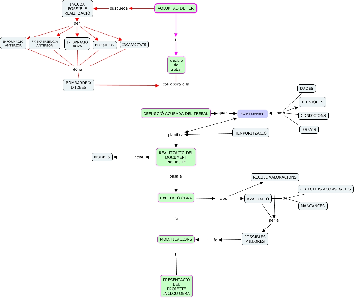 Este Cmap, tiene información relacionada con: DOLORS, ESPAIS amb TÈCNIQUES, BLOQUEJOS dóna BOMBARDEIX D'IDEES, INCUBA POSSIBLE REALITZACIÓ per INFORMACIÓ ANTERIOR, BOMBARDEIX D'IDEES col·labora a la DEFINICIÓ ACURADA DEL TREBAL, VOLUNTAD DE FER i decició del treball, VOLUNTAD DE FER búsqueda INCUBA POSSIBLE REALITZACIÓ, EXECUCIÓ OBRA inclou RECULL VALORACIONS, CONDICIONS amb TÈCNIQUES, INCUBA POSSIBLE REALITZACIÓ per ???EXPERIÈNCIA ANTERIOR, RECULL VALORACIONS per a POSSIBLES MILLORES, TEMPORITZACIÓ planifica REALITZACIÓ DEL DOCUMENT PROJECTE, AVALUACIÓ per a POSSIBLES MILLORES, DEFINICIÓ ACURADA DEL TREBAL planifica REALITZACIÓ DEL DOCUMENT PROJECTE, MODIFICACIONS Ii PRESENTACIÓ DEL PROJECTE INCLOU OBRA, DADES amb PLANTEJAMENT, DADES amb TÈCNIQUES, EXECUCIÓ OBRA inclou AVALUACIÓ, INFORMACIÓ ANTERIOR dóna BOMBARDEIX D'IDEES, INCUBA POSSIBLE REALITZACIÓ per INCAPACITATS, INCAPACITATS dóna BOMBARDEIX D'IDEES