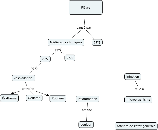 Cette carte de concepts créée avec IHMC CmapTools traite de: Karina Lopez, vasoldilation entraîne Rougeur, Médiateurs chimiques ???? ????, Fièvre causé par ????, inflammation amène douleur, infection relié à microorganisme, ???? ???? vasoldilation, vasoldilation entraîne Oedeme, vasoldilation entraîne Érythème, Médiateurs chimiques ???? ????, Fièvre causé par Médiateurs chimiques