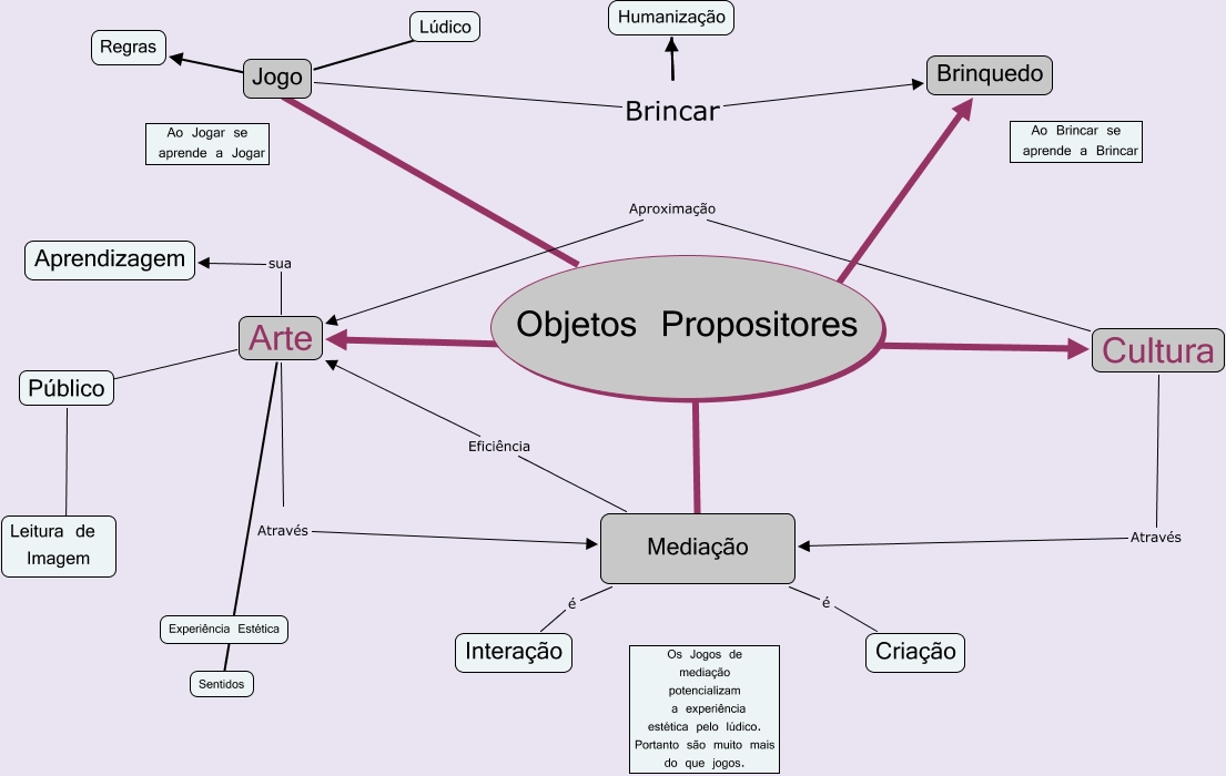 Esse mapa conceitual, produzido no IHMC CmapTools, tem a informação relacionada a: Objetos Propositores, Arte sua Aprendizagem, Jogo Brincar Humanização, Objetos Propositores ???? Mediação, Cultura Através Mediação, Objetos Propositores ???? Cultura, Mediação é Criação, Humanização Brincar Brinquedo, Mediação Eficiência Arte, Mediação é Interação, Jogo ???? Lúdico, Arte ???? Sentidos, Público ???? Leitura de Imagem, Jogo ???? Regras, Objetos Propositores ???? Arte, Objetos Propositores ???? Brinquedo, Humanização Brincar Brinquedo, Jogo Brincar Brinquedo, Arte Através Mediação, Cultura Aproximação Arte, Arte ???? Público