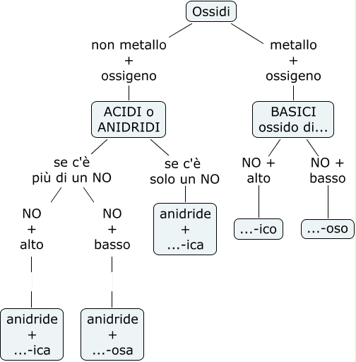 Questa Cmap, creata con IHMC CmapTools, contiene informazioni relative a: Ossidi, BASICI ossido di... NO + alto ...-ico, NO + basso anidride + ...-osa, ACIDI o ANIDRIDI se c'è più di un NO NO + basso, Ossidi metallo + ossigeno BASICI ossido di..., ACIDI o ANIDRIDI se c'è solo un NO anidride + ...-ica, Ossidi non metallo + ossigeno ACIDI o ANIDRIDI, ACIDI o ANIDRIDI se c'è più di un NO NO + alto, BASICI ossido di... NO + basso ...-oso, NO + alto anidride + ...-ica