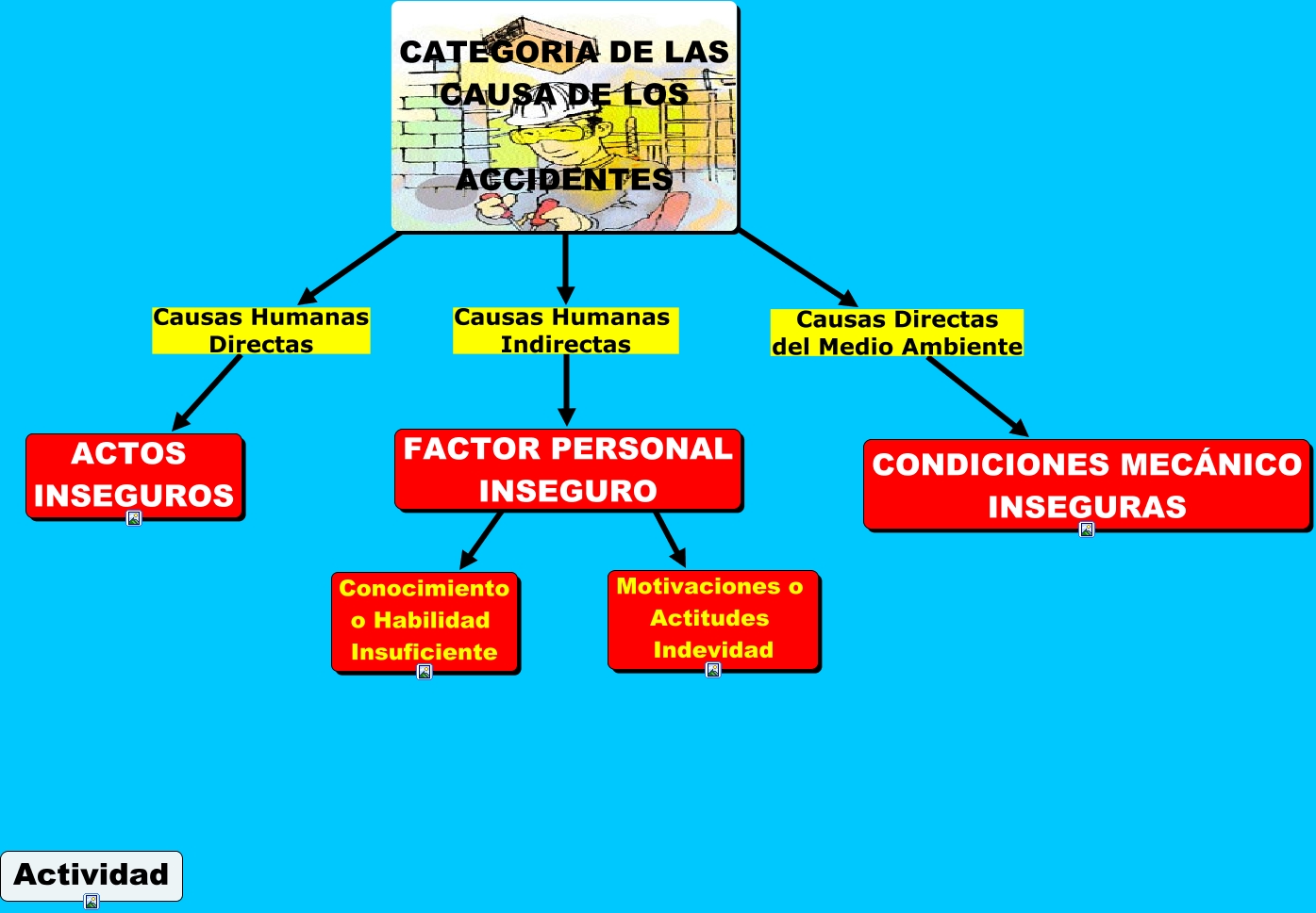Este Cmap, tiene información relacionada con: Causa Accidente, CATEGORIA DE LAS CAUSA DE LOS ACCIDENTES Causas Directas del Medio Ambiente CONDICIONES MECÁNICO INSEGURAS, CATEGORIA DE LAS CAUSA DE LOS ACCIDENTES Causas Humanas Directas ACTOS INSEGUROS, CATEGORIA DE LAS CAUSA DE LOS ACCIDENTES Causas Humanas Indirectas FACTOR PERSONAL INSEGURO, FACTOR PERSONAL INSEGURO ???? Conocimiento o Habilidad Insuficiente, FACTOR PERSONAL INSEGURO ???? Motivaciones o Actitudes Indevidad