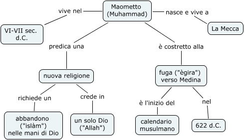 Questa Cmap, creata con IHMC CmapTools, contiene informazioni relative a: Vol 1 Cap 4 Par 1 b) Maometto, fuga ("ègira") verso Medina è l'inizio del calendario musulmano, fuga ("ègira") verso Medina nel 622 d.C., Maometto (Muhammad) predica una nuova religione, nuova religione richiede un abbandono ("islàm") nelle mani di Dio, Maometto (Muhammad) nasce e vive a La Mecca, Maometto (Muhammad) vive nel VI-VII sec. d.C., Maometto (Muhammad) è costretto alla fuga ("ègira") verso Medina, nuova religione crede in un solo Dio ("Allah")