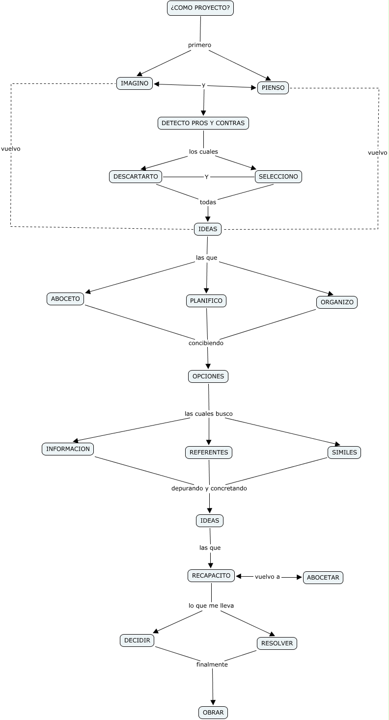 Este Cmap, tiene información relacionada con: COMO PROYECTO VIOLETA SEGURA, SELECCIONO Y DESCARTARTO, ¿COMO PROYECTO? primero PIENSO, OPCIONES las cuales busco SIMILES, DESCARTARTO todas IDEAS, ¿COMO PROYECTO? primero IMAGINO, ABOCETO concibiendo OPCIONES, DESCARTARTO todas SELECCIONO, DETECTO PROS Y CONTRAS los cuales DESCARTARTO, RECAPACITO lo que me lleva DECIDIR, PLANIFICO concibiendo OPCIONES, IDEAS vuelvo IMAGINO, RECAPACITO lo que me lleva RESOLVER, ORGANIZO concibiendo OPCIONES, IDEAS las que ORGANIZO, DECIDIR finalmente OBRAR, IDEAS las que ABOCETO, OPCIONES las cuales busco REFERENTES, DETECTO PROS Y CONTRAS los cuales SELECCIONO, IDEAS las que RECAPACITO, IDEAS las que PLANIFICO