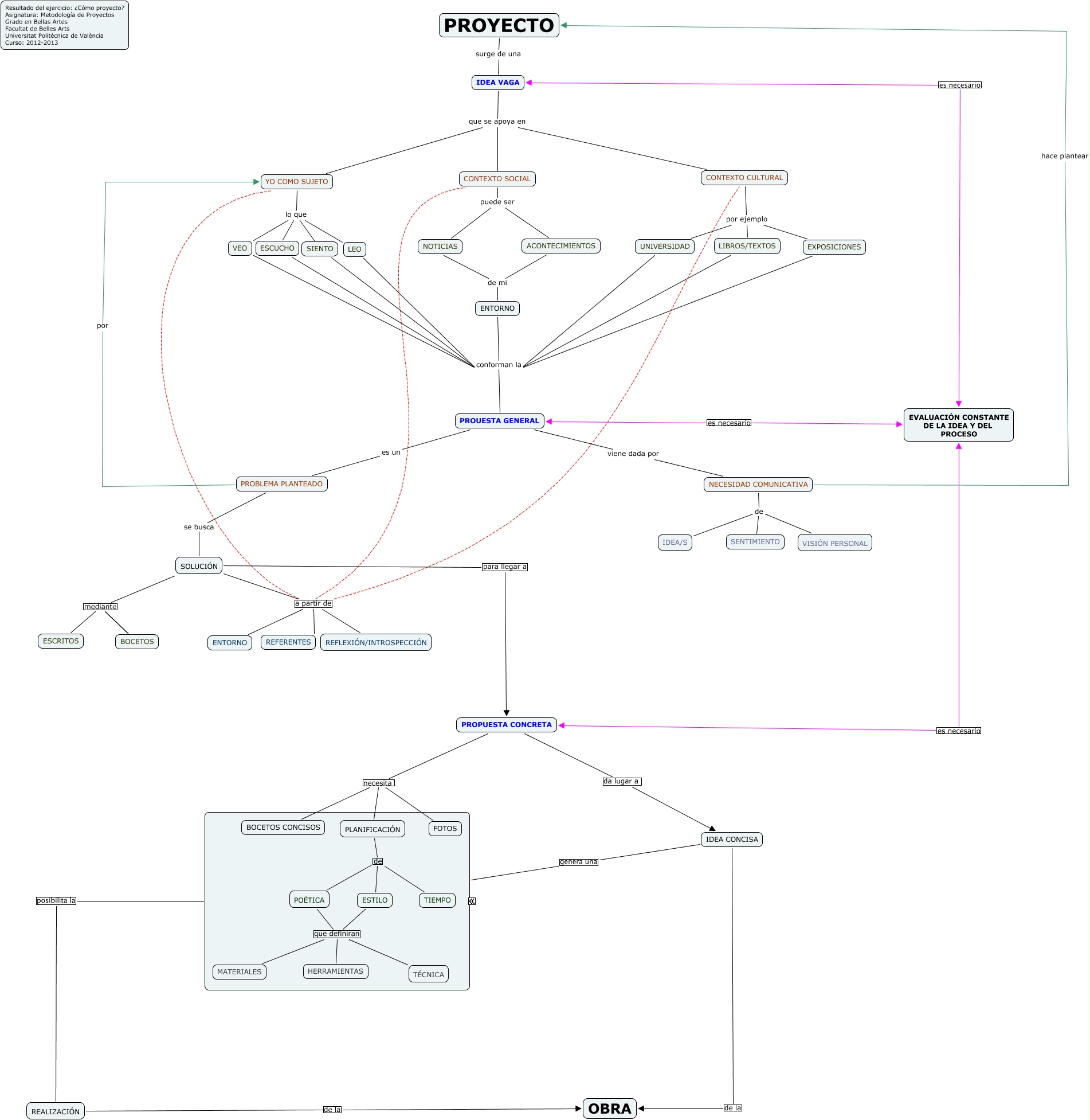 Este Cmap, tiene información relacionada con: Mateo Folgado, Pablo, SOLUCIÓN a partir de REFERENTES, ENTORNO conforman la PROUESTA GENERAL, REALIZACIÓN de la OBRA, CONTEXTO SOCIAL puede ser ACONTECIMIENTOS, CONTEXTO SOCIAL puede ser NOTICIAS, YO COMO SUJETO lo que VEO, YO COMO SUJETO lo que ESCUCHO, PROYECTO surge de una IDEA VAGA, EXPOSICIONES conforman la PROUESTA GENERAL, NECESIDAD COMUNICATIVA de SENTIMIENTO, PROPUESTA CONCRETA da lugar a IDEA CONCISA, NECESIDAD COMUNICATIVA de VISIÓN PERSONAL, SOLUCIÓN a partir de CONTEXTO CULTURAL, CONTEXTO CULTURAL por ejemplo UNIVERSIDAD, NECESIDAD COMUNICATIVA de IDEA/S, VEO conforman la PROUESTA GENERAL, ESTILO que definiran HERRAMIENTAS, ESTILO que definiran TÉCNICA, SOLUCIÓN para llegar a PROPUESTA CONCRETA, IDEA VAGA que se apoya en YO COMO SUJETO