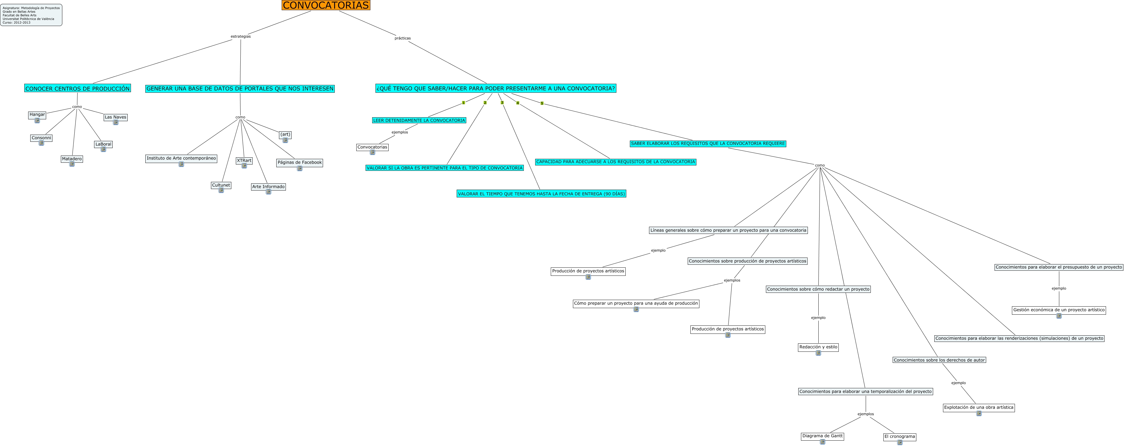 Este Cmap, tiene información relacionada con: Convocatorias, Las Naves como Consonni, Líneas generales sobre cómo preparar un proyecto para una convocatoria como Conocimientos sobre cómo redactar un proyecto, Las Naves como Matadero, Conocimientos sobre los derechos de autor ejemplo Explotación de una obra artística, CONOCER CENTROS DE PRODUCCIÓN como LaBoral, SABER ELABORAR LOS REQUISITOS QUE LA CONVOCATORIA REQUIERE como Conocimientos sobre los derechos de autor, SABER ELABORAR LOS REQUISITOS QUE LA CONVOCATORIA REQUIERE como Conocimientos para elaborar una temporalización del proyecto, Conocimientos para elaborar el presupuesto de un proyecto ejemplo Gestión económica de un proyecto artístico, CONOCER CENTROS DE PRODUCCIÓN como Consonni, GENERAR UNA BASE DE DATOS DE PORTALES QUE NOS INTERESEN como Instituto de Arte contemporáneo, GENERAR UNA BASE DE DATOS DE PORTALES QUE NOS INTERESEN como XTRart, Conocimientos sobre cómo redactar un proyecto ejemplo Redacción y estilo, CONVOCATORIAS estrategias GENERAR UNA BASE DE DATOS DE PORTALES QUE NOS INTERESEN, Conocimientos sobre producción de proyectos artísticos como Conocimientos sobre cómo redactar un proyecto, Conocimientos para elaborar una temporalización del proyecto ejemplos El cronograma, Conocimientos sobre producción de proyectos artísticos como Conocimientos sobre los derechos de autor, Hangar como Matadero, GENERAR UNA BASE DE DATOS DE PORTALES QUE NOS INTERESEN como Páginas de Facebook, Conocimientos para elaborar una temporalización del proyecto ejemplos Diagrama de Gantt, Líneas generales sobre cómo preparar un proyecto para una convocatoria como Conocimientos para elaborar las renderizaciones (simulaciones) de un proyecto