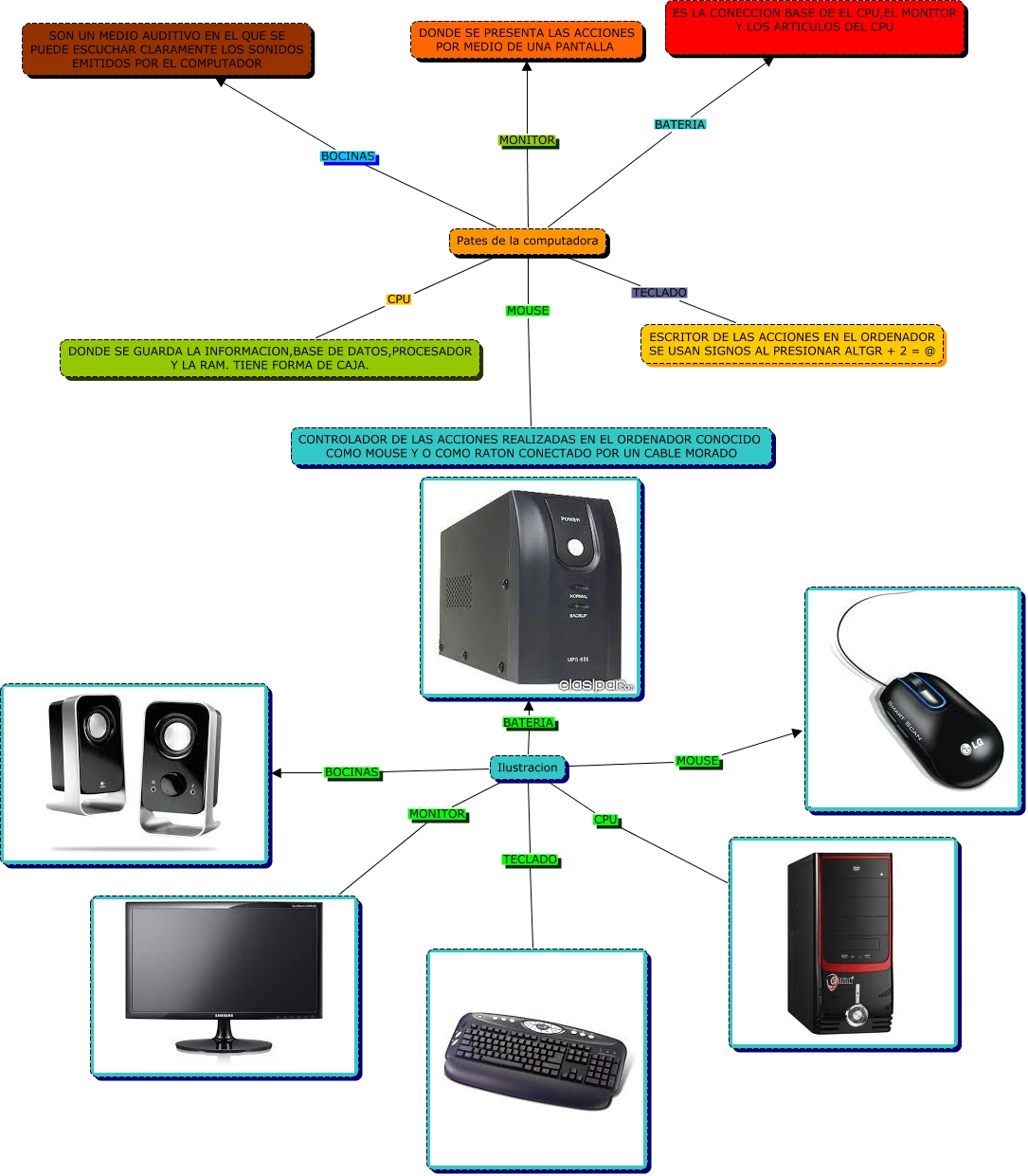 Este Cmap, tiene información relacionada con: dfsu, Ilustracion CPU, Ilustracion BOCINAS, Pates de la computadora MOUSE CONTROLADOR DE LAS ACCIONES REALIZADAS EN EL ORDENADOR CONOCIDO COMO MOUSE Y O COMO RATON CONECTADO POR UN CABLE MORADO, Ilustracion BATERIA, Pates de la computadora BOCINAS SON UN MEDIO AUDITIVO EN EL QUE SE PUEDE ESCUCHAR CLARAMENTE LOS SONIDOS EMITIDOS POR EL COMPUTADOR, Pates de la computadora BATERIA ES LA CONECCION BASE DE EL CPU,EL MONITOR Y LOS ARTICULOS DEL CPU, Ilustracion MOUSE, Ilustracion TECLADO, Pates de la computadora MONITOR DONDE SE PRESENTA LAS ACCIONES POR MEDIO DE UNA PANTALLA, Pates de la computadora TECLADO ESCRITOR DE LAS ACCIONES EN EL ORDENADOR SE USAN SIGNOS AL PRESIONAR ALTGR + 2 = @, Pates de la computadora CPU DONDE SE GUARDA LA INFORMACION,BASE DE DATOS,PROCESADOR Y LA RAM. TIENE FORMA DE CAJA., Ilustracion MONITOR