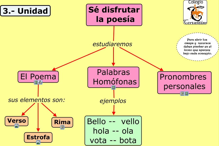 Este Cmap, tiene información relacionada con: III UNIDAD SÉ DISFRUTAR LA POESÍA, Sé disfrutar la poesía estudiaremos Palabras Homófonas, Palabras Homófonas ejemplos Bello -- vello hola -- ola vota -- bota, Sé disfrutar la poesía estudiaremos Pronombres personales, El Poema sus elementos son: Verso, Sé disfrutar la poesía estudiaremos El Poema, El Poema sus elementos son: Rima, El Poema sus elementos son: Estrofa
