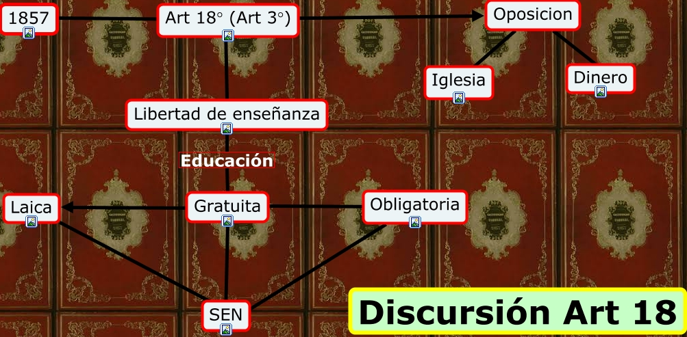 Este Cmap, tiene información relacionada con: Discursion articulo !8, Gratuita ???? Laica, Gratuita ???? SEN, Gratuita ???? Obligatoria, Obligatoria ???? SEN, 1857 ???? Art 18° (Art 3°), Laica ???? SEN, Oposicion ???? Dinero, Oposicion ???? Iglesia, Libertad de enseñanza Educación Gratuita, 1857 ???? Libertad de enseñanza, Art 18° (Art 3°) ???? Oposicion