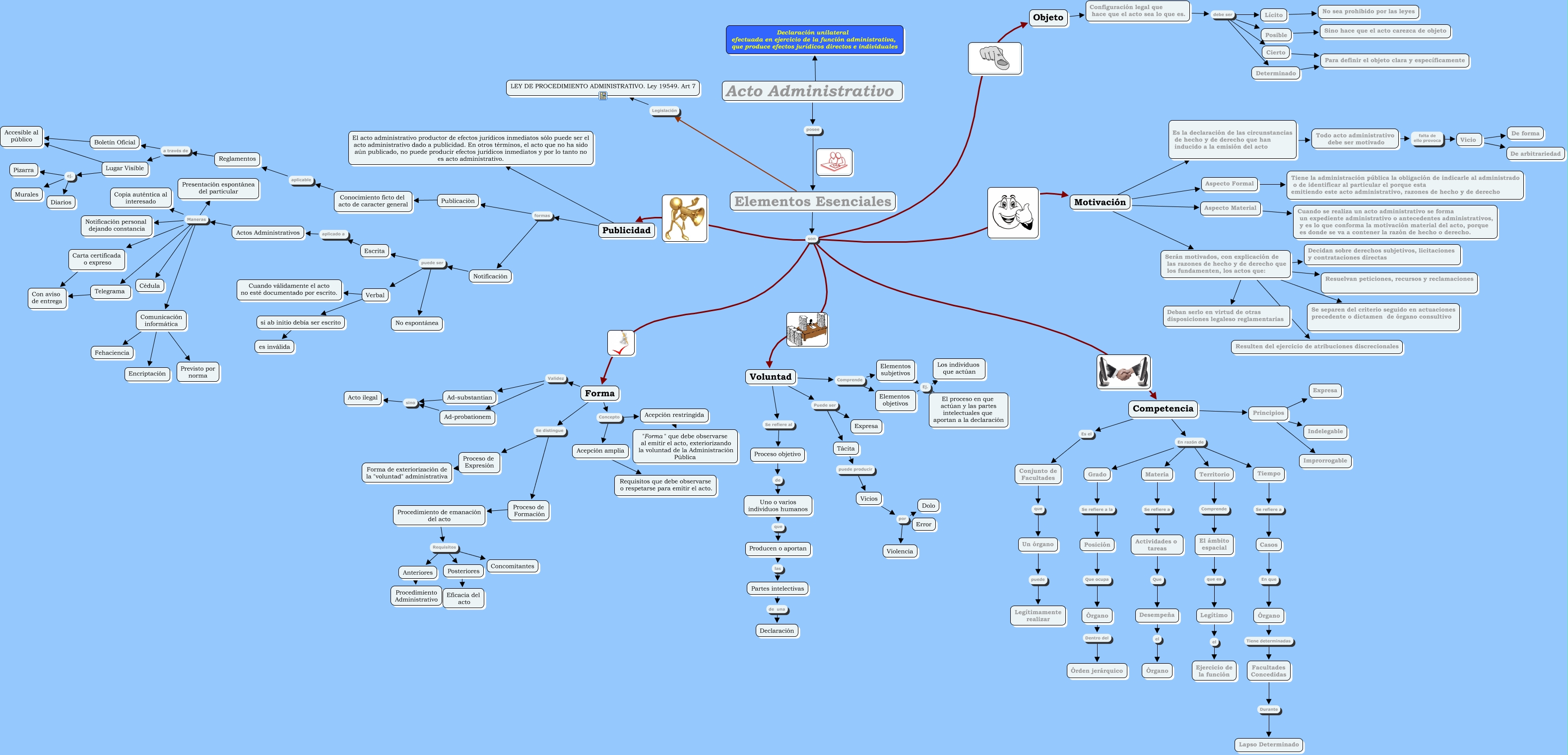 Este Cmap, tiene información relacionada con: ACTOS ADMINISTRATIVOS, Competencia Es el Conjunto de Facultades, Competencia En razón de Grado, Territorio Comprende El ámbito espacial, Objeto ???? Configuración legal que hace que el acto sea lo que es., Publicidad formas Publicaciòn, Elementos objetivos Ej. El proceso en que actúan y las partes intelectuales que aportan a la declaración, Elementos subjetivos Ej. Los individuos que actúan, Forma Se distingue Proceso de Expresión, Es la declaración de las circunstancias de hecho y de derecho que han inducido a la emisión del acto ???? Todo acto administrativo debe ser motivado, Configuración legal que hace que el acto sea lo que es. debe ser Cierto, Competencia En razón de Materia, Serán motivados, con explicación de las razones de hecho y de derecho que los fundamenten, los actos que: ???? Decidan sobre derechos subjetivos, licitaciones y contrataciones directas, Boletín Oficial ???? Accesible al público, Motivación ???? Es la declaración de las circunstancias de hecho y de derecho que han inducido a la emisión del acto, Notificación puede ser Escrita, Actos Administrativos Maneras Telegrama, Anteriores ???? Procedimiento Administrativo, Tácita puede producir Vicios, Forma Concepto Acepción restringida, Acepción amplia ???? Requisitos que debe observarse o respetarse para emitir el acto.
