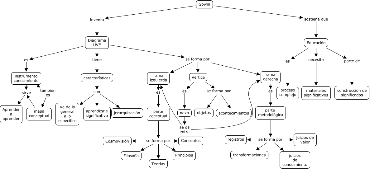 Este Cmap, tiene información relacionada con: Gowin, instrumento conocimiento sirve Aprender a aprender, instrumento conocimiento también es mapa conceptual, nexo se da entre rama derecha, rama derecha es parte metodológica, características son jerarquización, Diagrama UVE tiene características, parte coceptual se forma por Principios, rama izquierda es parte coceptual, Vértice es nexo, parte coceptual se forma por Conceptos, mapa conceptual sirve Aprender a aprender, Diagrama UVE es instrumento conocimiento, Vértice se forma por acontecimientos, Gowin sostiene que Educación, características son Va de lo general a lo específico, Diagrama UVE se forma por Vértice, parte metodológica se forma por juicios de conocimiento, parte metodológica se forma por registros, Diagrama UVE se forma por rama izquierda, nexo se da entre rama izquierda