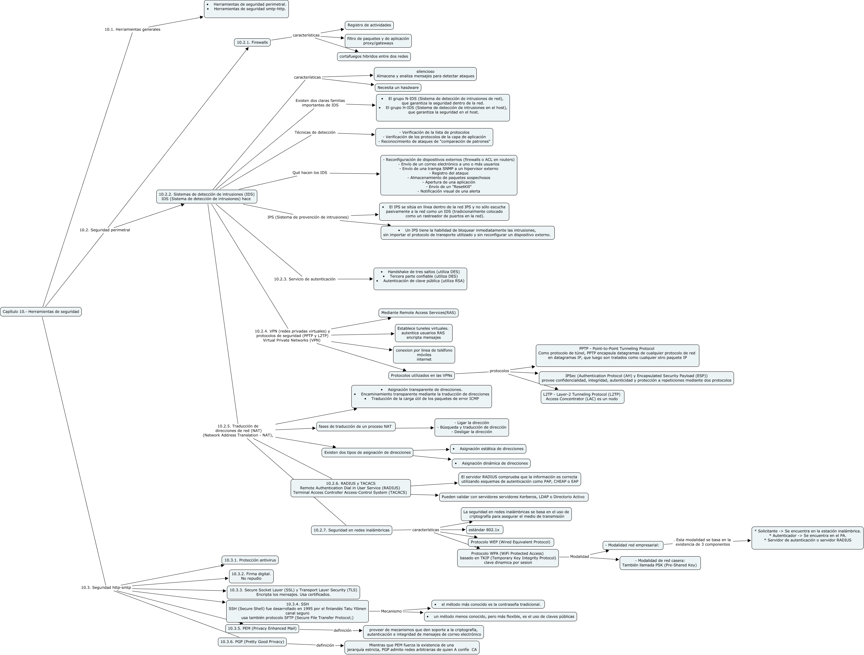 Este Cmap, tiene información relacionada con: A12.10 - Herramientas de seguridad, 10.2.7. Seguridad en redes inalámbricas características La seguridad en redes inalámbricas se basa en el uso de criptografía para asegurar el medio de transmisión, Capítulo 10.- Herramientas de seguridad 10.1. Herramientas generales • Herramientas de seguridad perimetral. • Herramientas de seguridad smtp-http., 10.2.2. Sistemas de detección de intrusiones (IDS) IDS (Sistema de detección de intrusiones) hace 10.2.5. Traducción de direcciones de red (NAT) (Network Address Translation - NAT), fases de traducción de un proceso NAT, Protocolo WPA (WiFi Protected Access) basado en TKIP (Temporary Key Integrity Protocol) clave dinamica por sesion Modalidad - Modalidad de red casera: También llamada PSK (Pre-Shared Key), 10.2.2. Sistemas de detección de intrusiones (IDS) IDS (Sistema de detección de intrusiones) hace Qué hacen los IDS - Reconfiguración de dispositivos externos (firewalls o ACL en routers) - Envío de un correo electrónico a uno o más usuarios - Envío de una trampa SNMP a un hipervisor externo - Registro del ataque - Almacenamiento de paquetes sospechosos - Apertura de una aplicación - Envío de un "ResetKill" - Notificación visual de una alerta, Capítulo 10.- Herramientas de seguridad 10.2. Seguridad perimetral 10.2.1. Firewalls, 10.3.4. SSH SSH (Secure Shell) fue desarrollado en 1995 por el finlandés Tatu Ylönen canal seguro usa también protocolo SFTP (Secure File Transfer Protocol;) Mecanismo • el método más conocido es la contraseña tradicional., 10.2.7. Seguridad en redes inalámbricas características Protocolo WPA (WiFi Protected Access) basado en TKIP (Temporary Key Integrity Protocol) clave dinamica por sesion, 10.2.2. Sistemas de detección de intrusiones (IDS) IDS (Sistema de detección de intrusiones) hace 10.2.5. Traducción de direcciones de red (NAT) (Network Address Translation - NAT), Existen dos tipos de asignación de direcciones, fases de traducción de un proceso NAT ???? - Ligar la dirección - Búsqueda y traducción de dirección - Desligar la dirección, 10.2.2. Sistemas de detección de intrusiones (IDS) IDS (Sistema de detección de intrusiones) hace IPS (Sistema de prevención de intrusiones) • El IPS se sitúa en línea dentro de la red IPS y no sólo escucha pasivamente a la red como un IDS (tradicionalmente colocado como un rastreador de puertos en la red)., 10.2.2. Sistemas de detección de intrusiones (IDS) IDS (Sistema de detección de intrusiones) hace 10.2.4. VPN (redes privadas virtuales) y protocolos de seguridad (PPTP y L2TP) Virtual Private Networks (VPN) Protocolos utilizados en las VPNs, Existen dos tipos de asignación de direcciones ???? • Asignación estática de direcciones, 10.2.2. Sistemas de detección de intrusiones (IDS) IDS (Sistema de detección de intrusiones) hace 10.2.4. VPN (redes privadas virtuales) y protocolos de seguridad (PPTP y L2TP) Virtual Private Networks (VPN) Establece tuneles virtuales. autentica usuarios RAS encripta mensajes, Protocolos utilizados en las VPNs protocolos L2TP - Layer-2 Tunneling Protocol (L2TP) Access Concentrator (LAC) es un nodo, 10.2.2. Sistemas de detección de intrusiones (IDS) IDS (Sistema de detección de intrusiones) hace características silencioso Almacena y analiza mensajes para detectar ataques, 10.2.7. Seguridad en redes inalámbricas características estándar 802.1x, Protocolo WPA (WiFi Protected Access) basado en TKIP (Temporary Key Integrity Protocol) clave dinamica por sesion Modalidad - Modalidad red empresarial:, Capítulo 10.- Herramientas de seguridad 10.3. Seguridad http-smtp 10.3.4. SSH SSH (Secure Shell) fue desarrollado en 1995 por el finlandés Tatu Ylönen canal seguro usa también protocolo SFTP (Secure File Transfer Protocol;), 10.2.1. Firewalls características cortafuegos hibridos entre dos redes